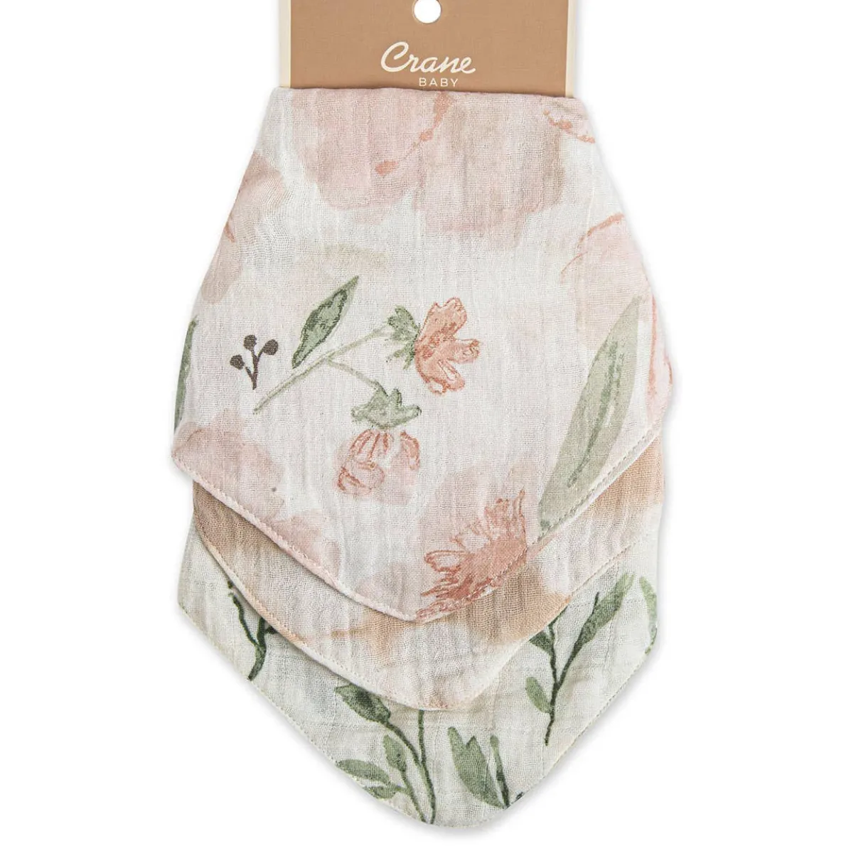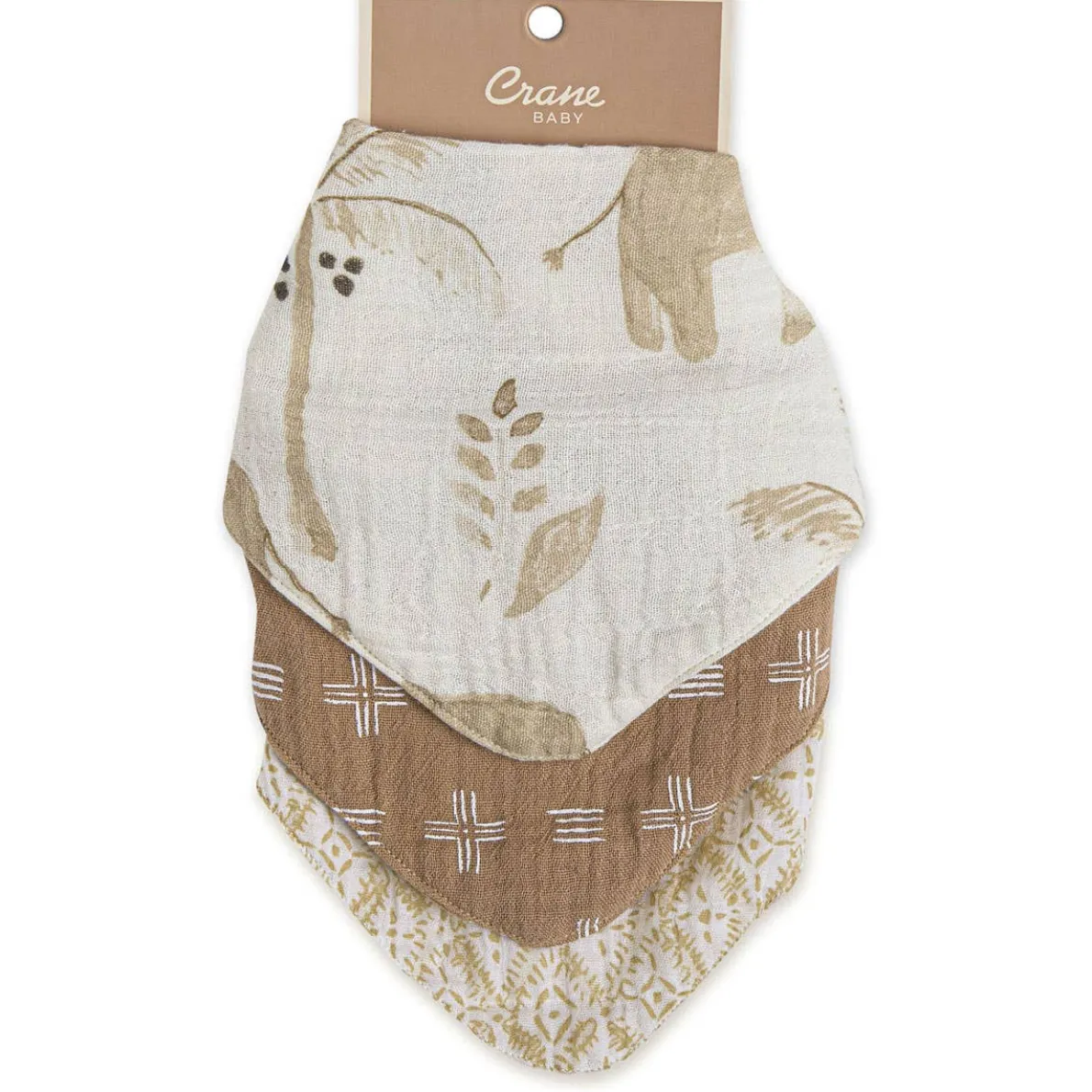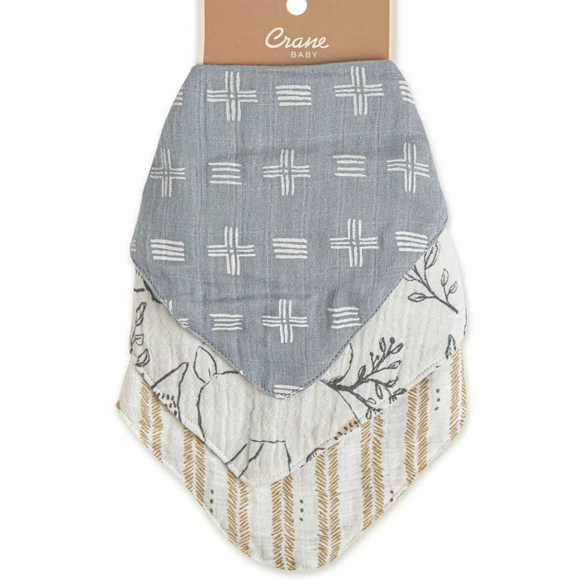 Lightweight and absorbent, our 100% cotton four layer muslin bibs are the perfect piece to accent baby’s “outfit of the day.” Each baby bib features adjustable snaps to grow with your baby, and the set includes three unique bib designs. Bibs are essential to keep your baby clean and dry. The perfect gift idea to bundle with our swaddle wraps and burp cloths available in the same print designs.