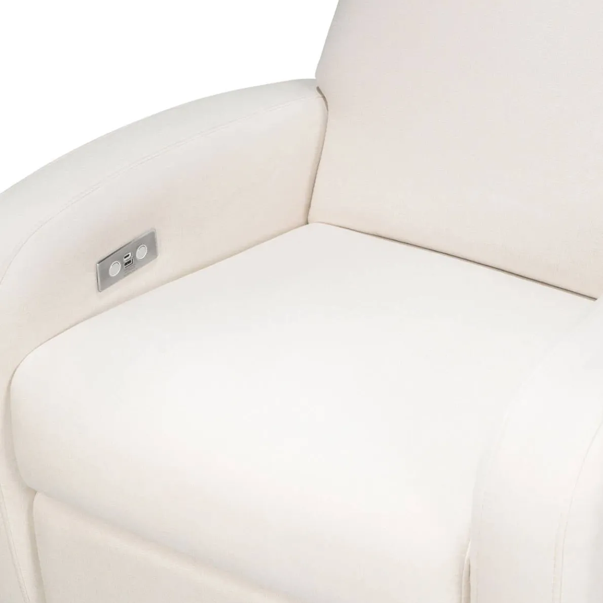 The Nami Glider Recliner is an elevated nursery accent piece that’s both playful and comfortable with its round and friendly silhouette. The oversized, organic proportions, coupled with its natural wood base, fit into a soft and modern palette. Rest and recharge in this recliner with its built-in USB port, smooth swivel motion, and effortless back and forth gliding. Lean back and relax at the touch of a button with this recliner’s quiet electronic control button.