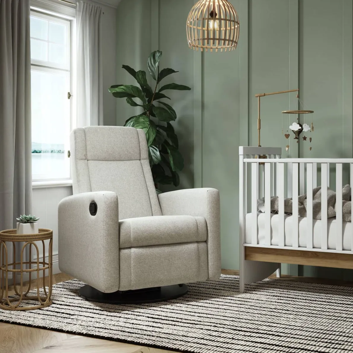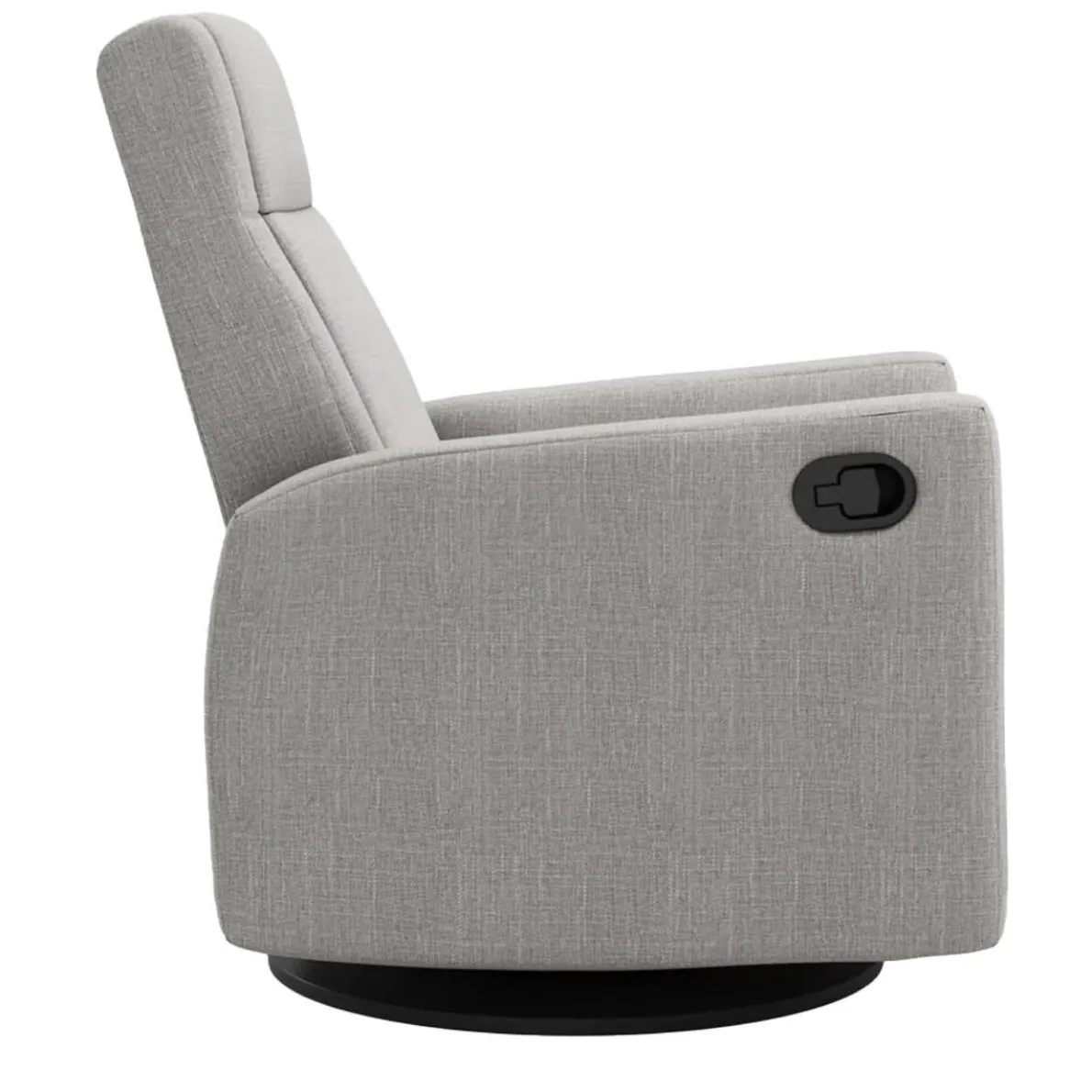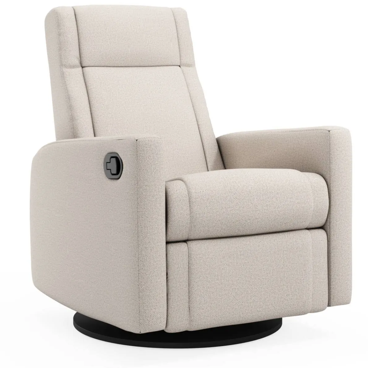 The NELLY Upholstered Swivel Recliner Chair by Jaymar BB is an eye-catcher with its trendy design and 360° swivel base. Handcrafted in Canada using only the finest materials and designed with clean lines, this swivel recliner chair will become a durable piece of furniture for years to come. The built-in footrest is activated by a lever hidden on the side of the chair. You can recline the back of the chair by applying body pressure to achieve the most relaxing position. Combined with the 360° swivel capability and Leggett&Platt* smooth quiet gliding and reclining system, this chair is simply unmatched.