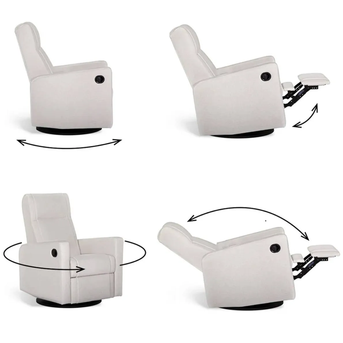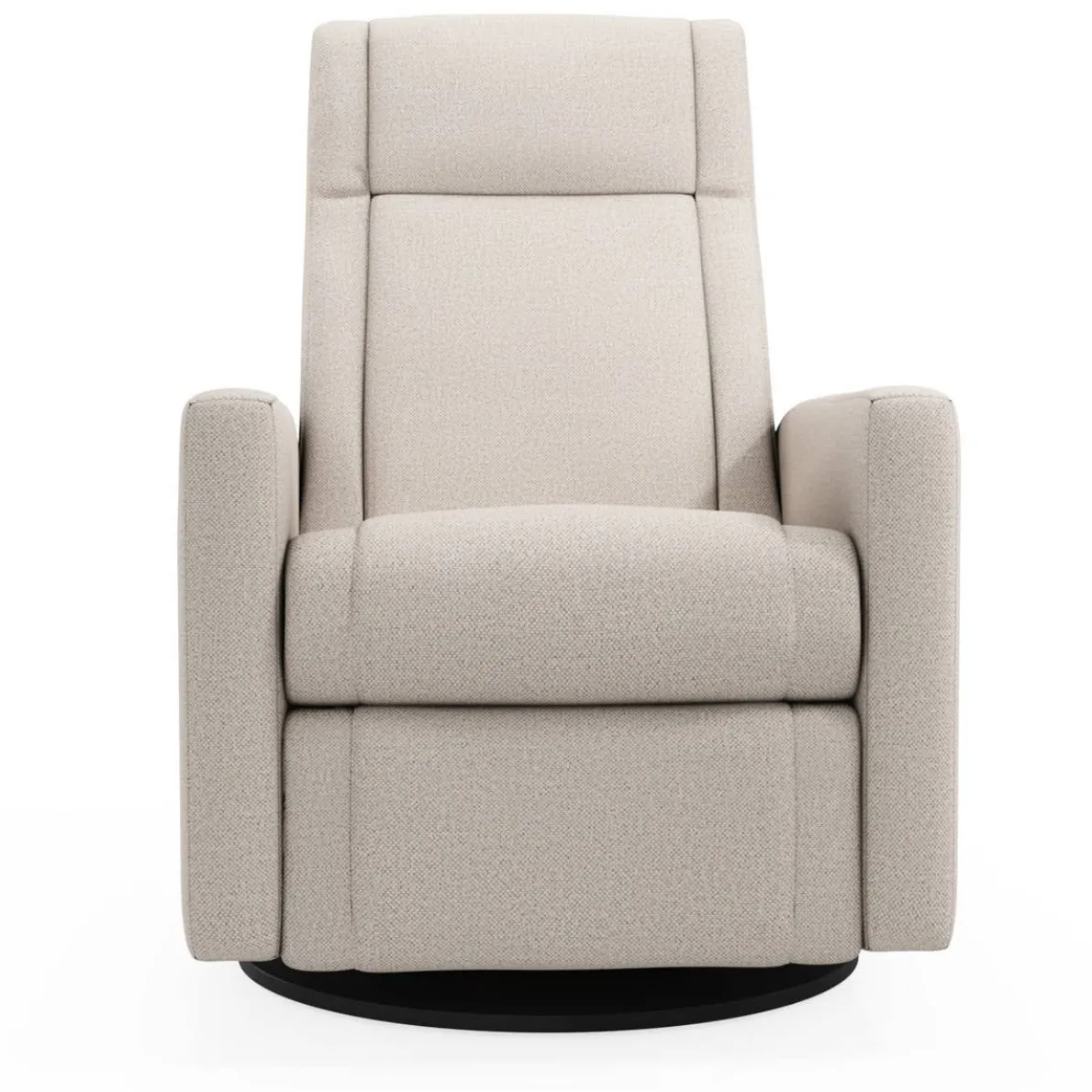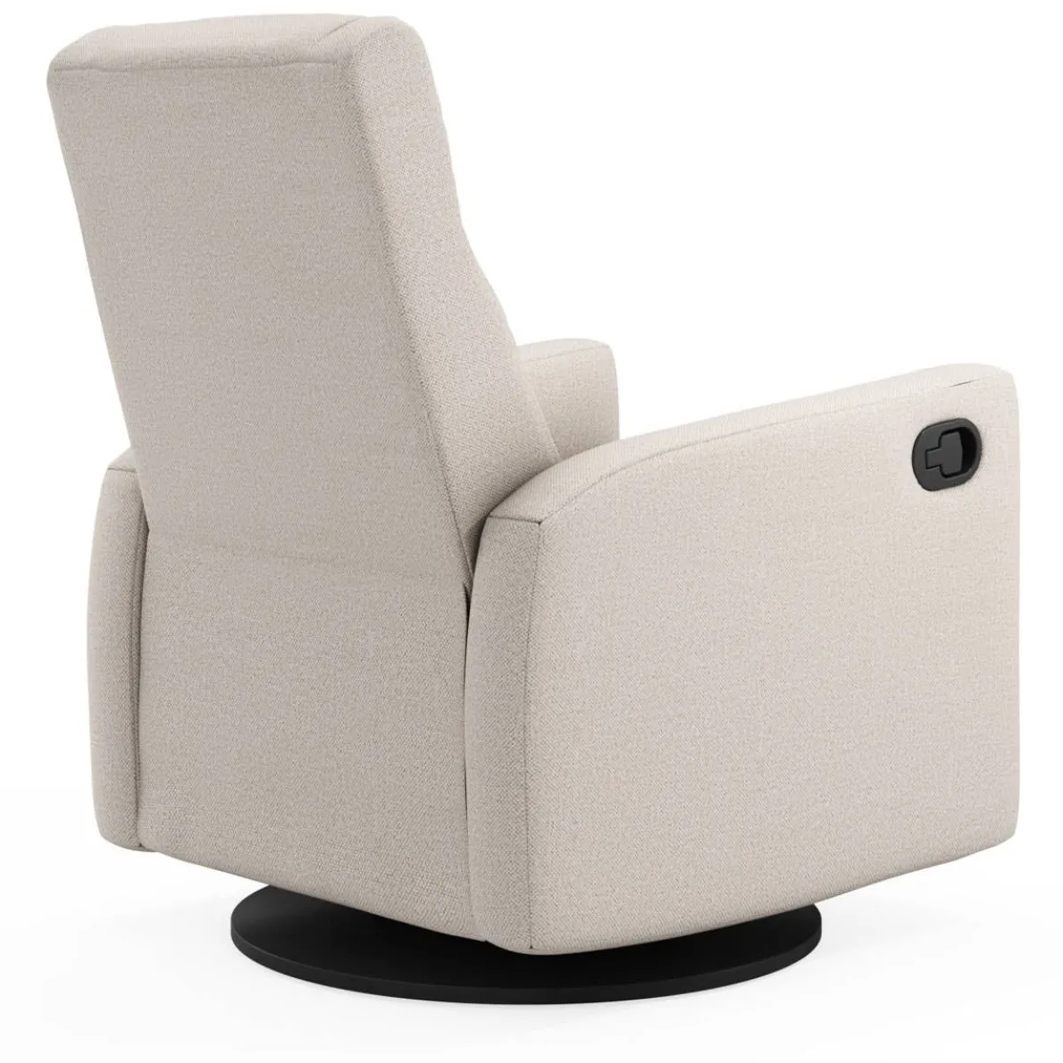 The NELLY Upholstered Swivel Recliner Chair by Jaymar BB is an eye-catcher with its trendy design and 360° swivel base. Handcrafted in Canada using only the finest materials and designed with clean lines, this swivel recliner chair will become a durable piece of furniture for years to come. The built-in footrest is activated by a lever hidden on the side of the chair. You can recline the back of the chair by applying body pressure to achieve the most relaxing position. Combined with the 360° swivel capability and Leggett&Platt* smooth quiet gliding and reclining system, this chair is simply unmatched.