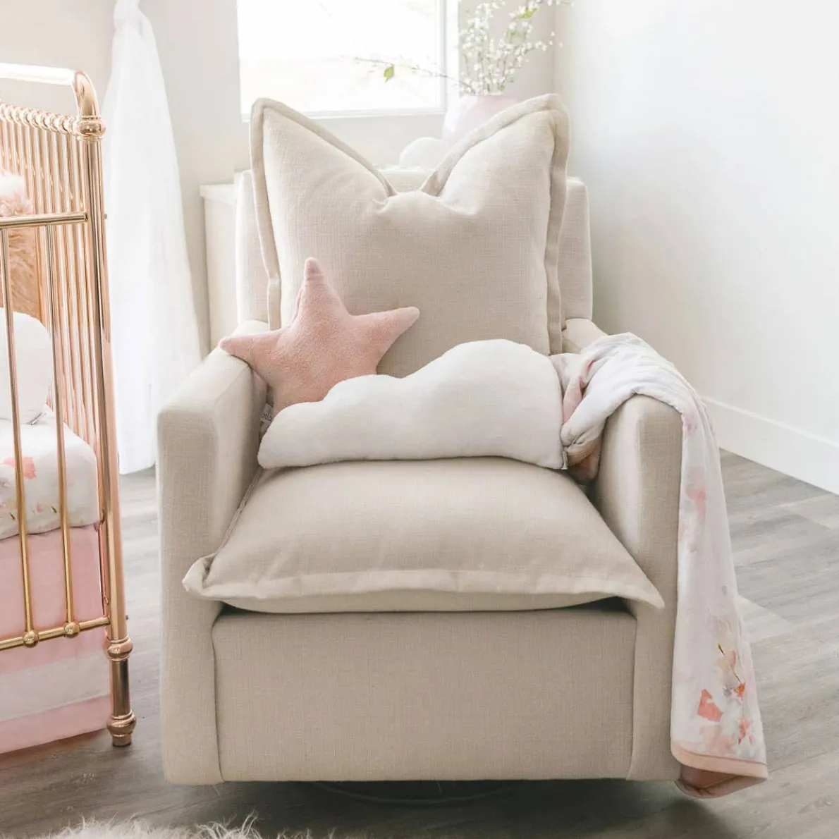 - The Nola glider features removable plush down cushions that allow you to sink into the chair to find your perfect spot. Embrace style, comfort, and sophistication!