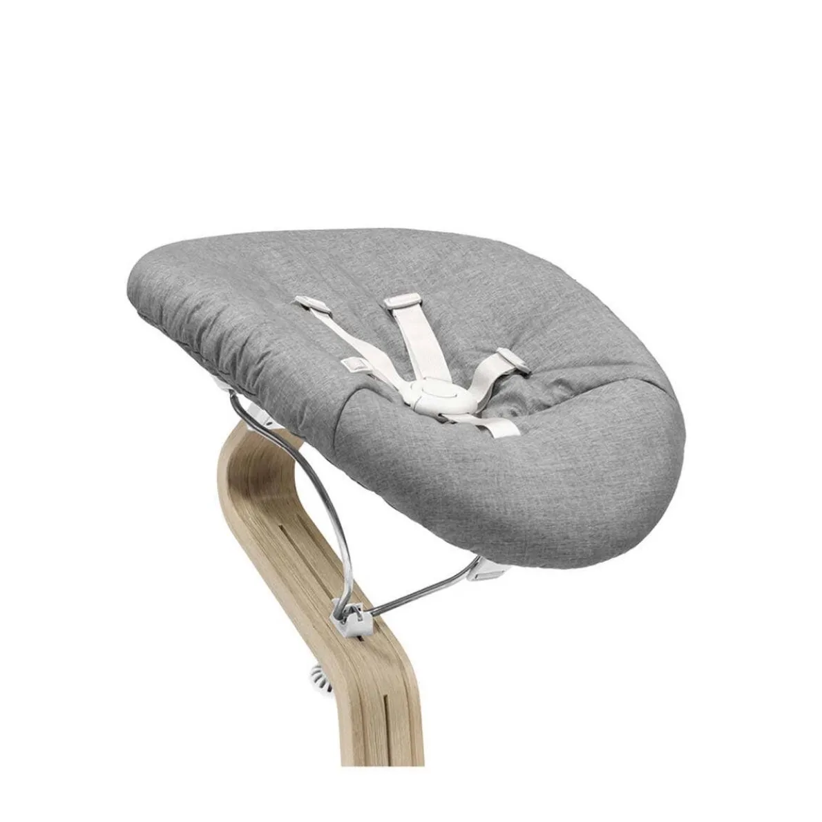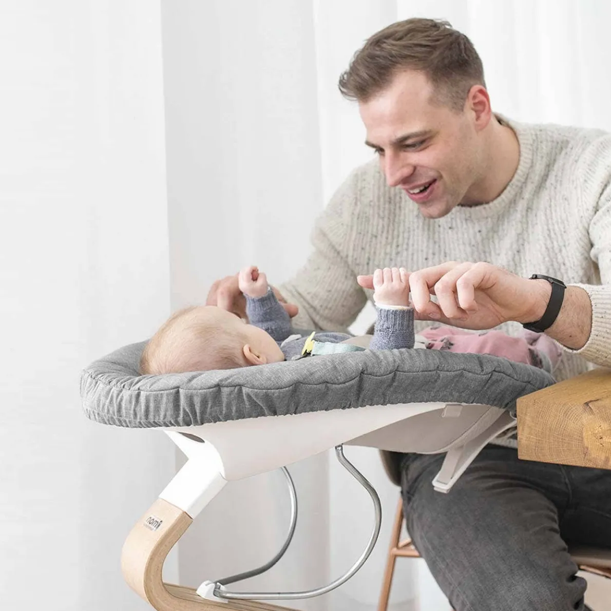 The Stokke® Nomi® Newborn Set is designed to provide your baby with a soft and cozy spot at the center of the family. The raised height is ideal for “talking”, playing and maintaining contact with your baby. The Stokke® Nomi® chair with the attached Newborn Setis easy to move around the house. Wherever you need an extra pair of hands – it can be seamlessly adjusted between an almost horizontal and more upright positions to meet your baby’s changing needs. It offers a gentle bounce responding to your baby’s natural movement while your baby’s head remains stable.