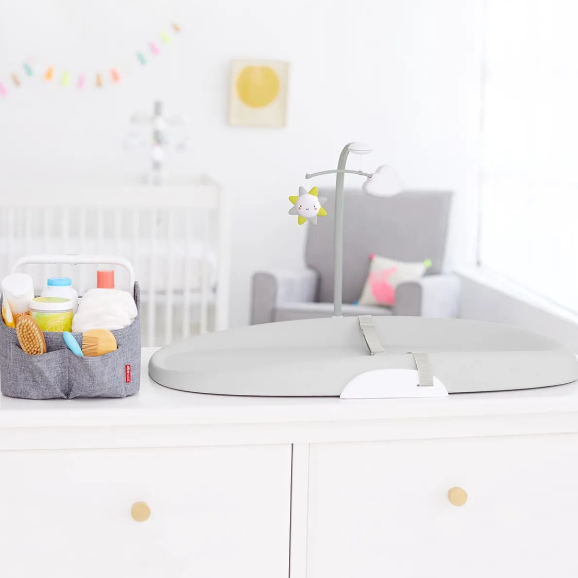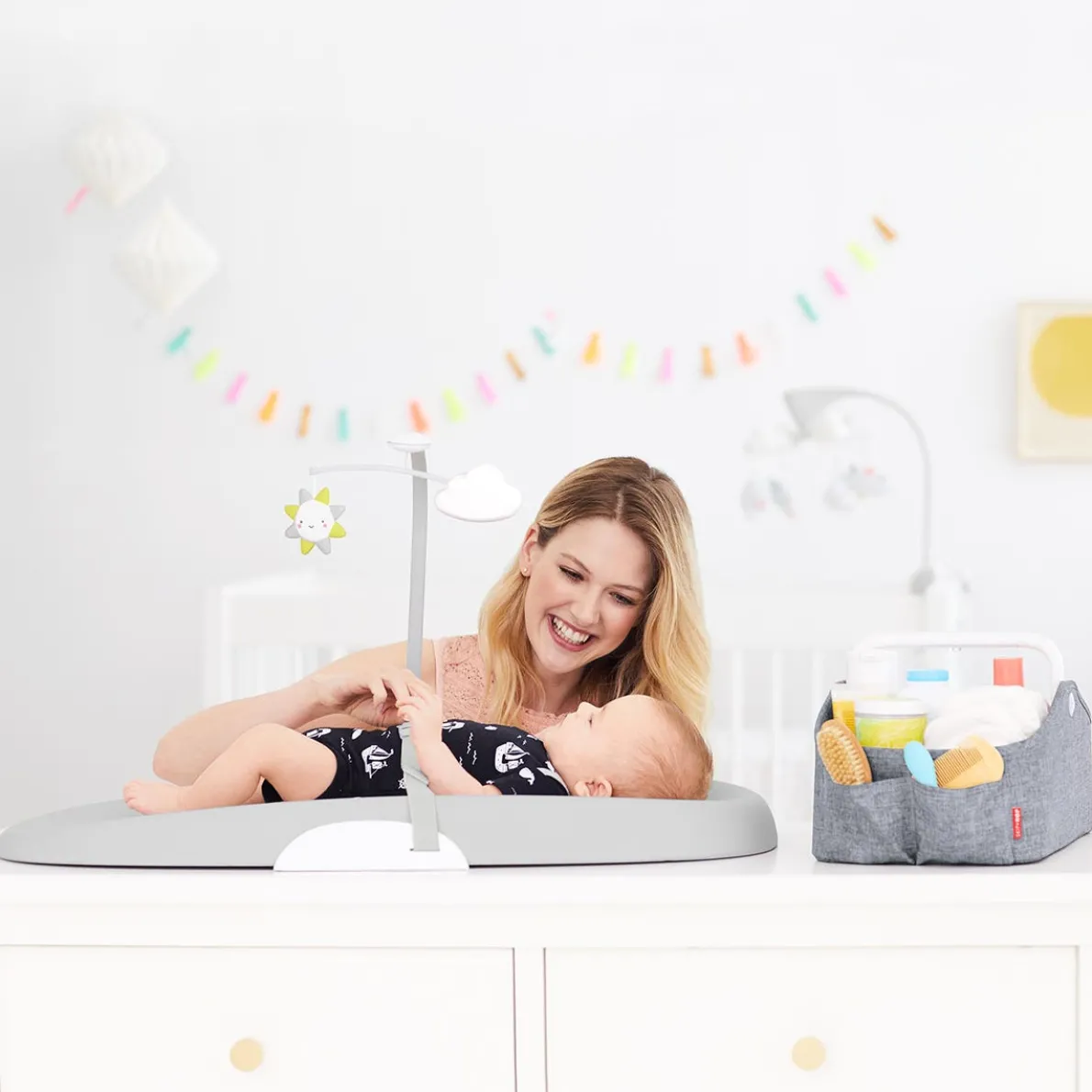 Parenting can be a dirty job, but it doesn’t need to be. Skip Hop’s contoured changing pad easily wipes clean, so you’re always ready for the next diaper change. Comfortable and cushioned with a tuck-away toy bar, it keeps baby happy and frees up time for busy parents.