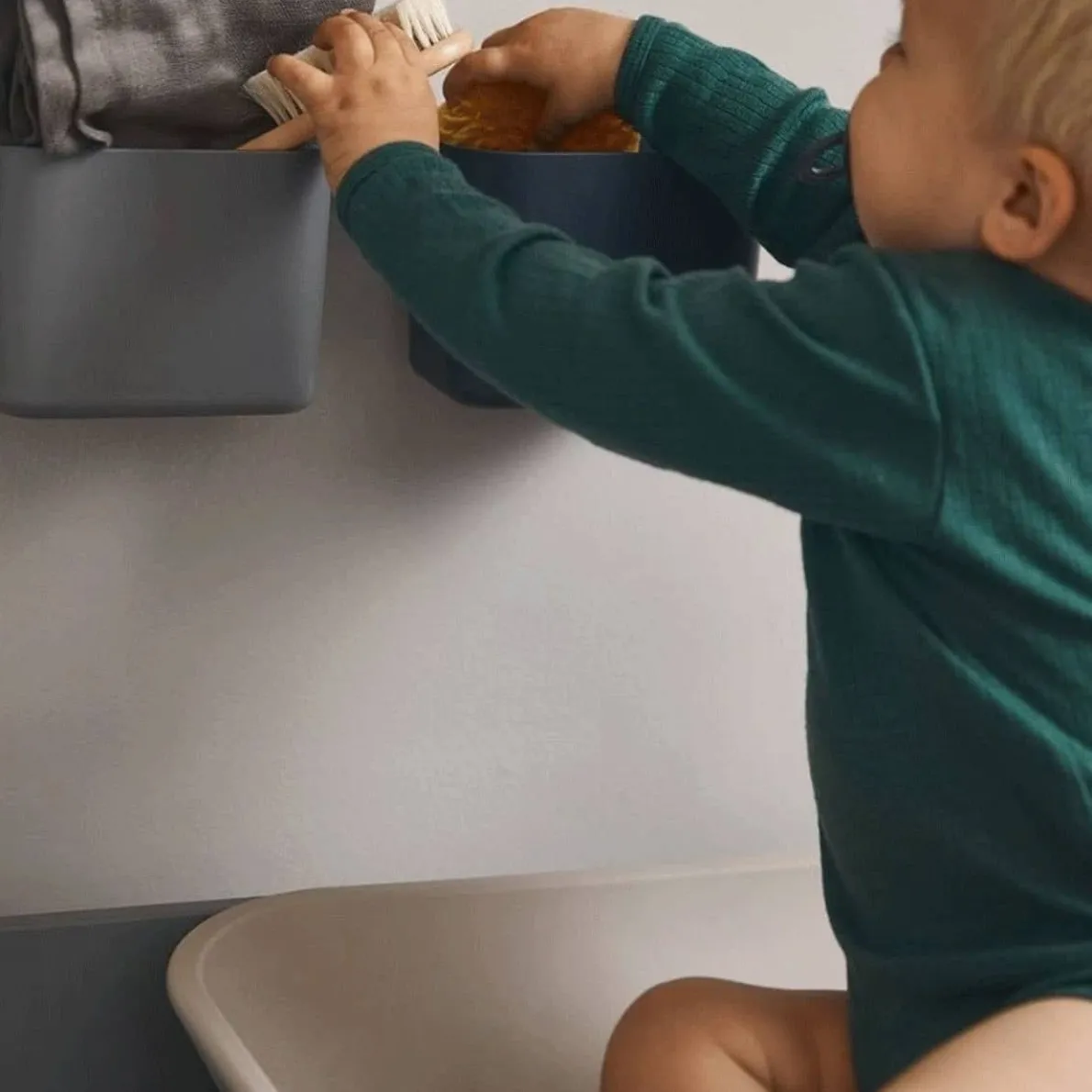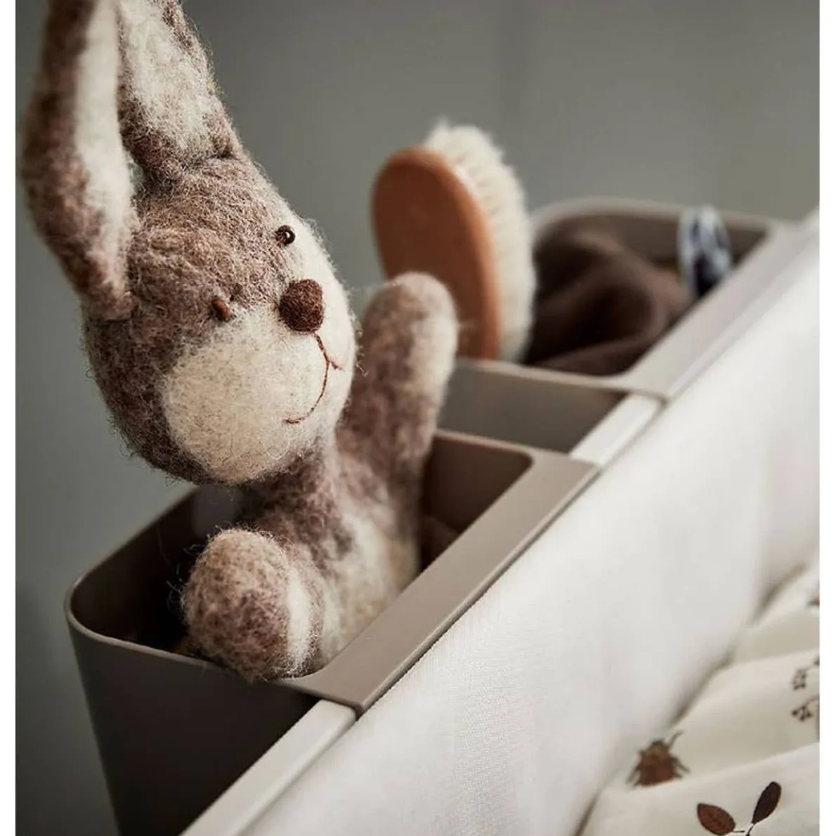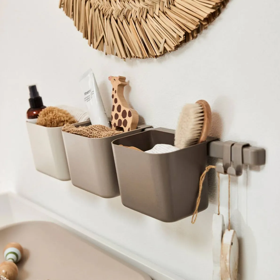 Keep your child’s room beautifully organized with this clever storage system from Leander in stylish colors. The set consists of a short and a long rail for the wall, three removable Organizers and 4 hooks. Screws and dowels are not included. The storage system helps you to keep your nursery essentials beautifully organized and easily accessible such as nappies, bodysuits, and pacifiers.