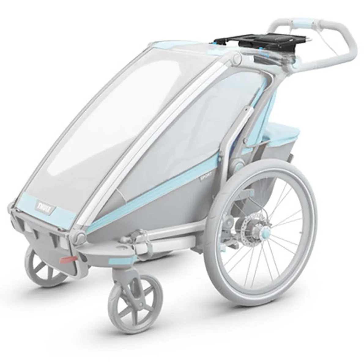 Add a zippered pocket and built-in cup holder to your Thule child carrier.