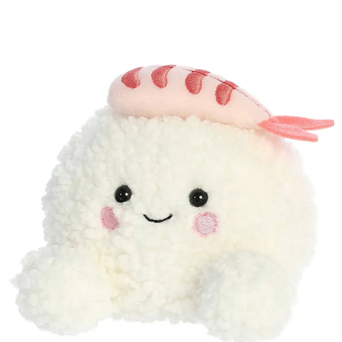 Ebi Shrimp Sushi is a charming plush with a textured, creamy body reminiscent of rice and a soft pink topping that captures the look of shrimp. His gentle eyes and warm smile invite you to share in his love for fine food.