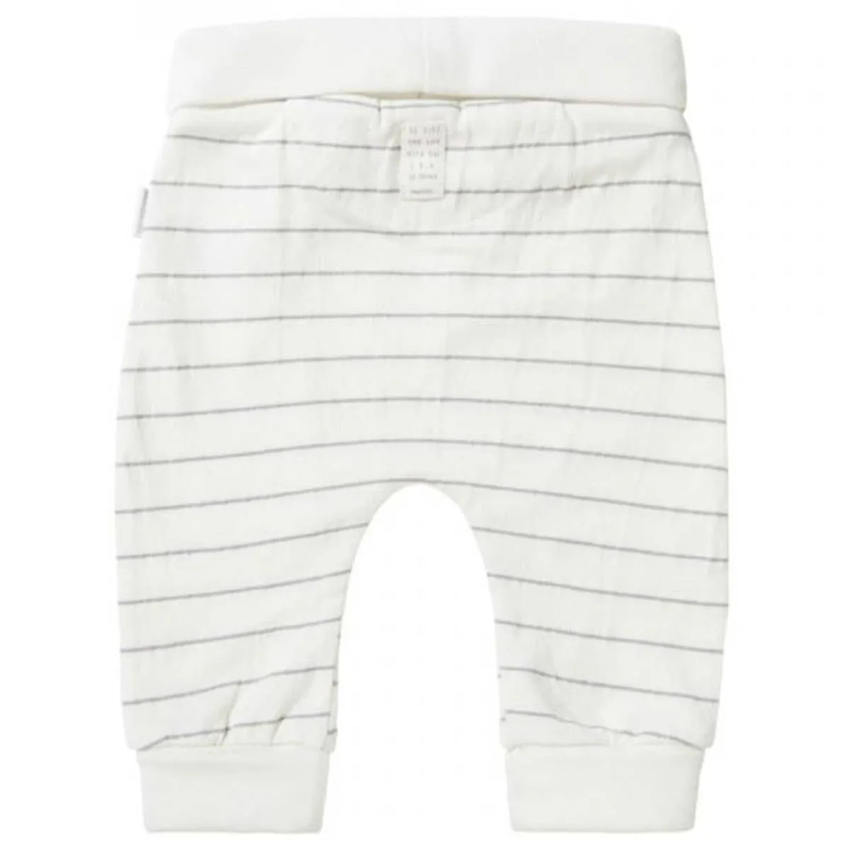 The Badin Unisex Trousers feature a striped pattern and a nifty fold-over waistband for added comfort. It comes in a relaxed fit, so falls nice and loose around the legs. The wider cuffs are foldable. Useful for when the trousers are still a touch too long, but they also ensure the trouser legs don’t ride up. Ideal! Combine with the matching shirt to complete this comfy look. This item features the GOTS Organic quality label. Which means it minimally consists of 95% organic fibres. GOTS (Global Organic Textile Standard) is the leading and most reliable quality label for organic textiles worldwide.