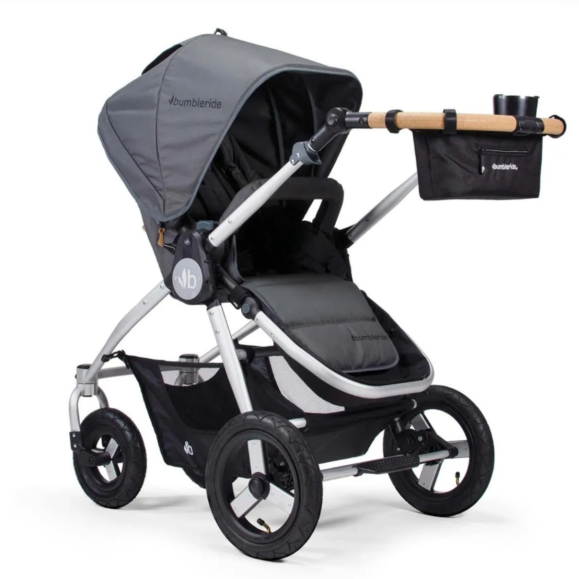 The Bumbleride Parent Pack is a parent console that attaches directly to the handle of your Bumbleride. Parent Pack now attaches with 4 Velcro straps for any handlebar angle. Constructed using durable fabric, Parent Pack is easily removed, and machine washed. It also folds down with your Bumbleride stroller (excluding Flite). It features two adult-sized cup holders and a secure magnetic pouch for your keys, phone and other valuables.