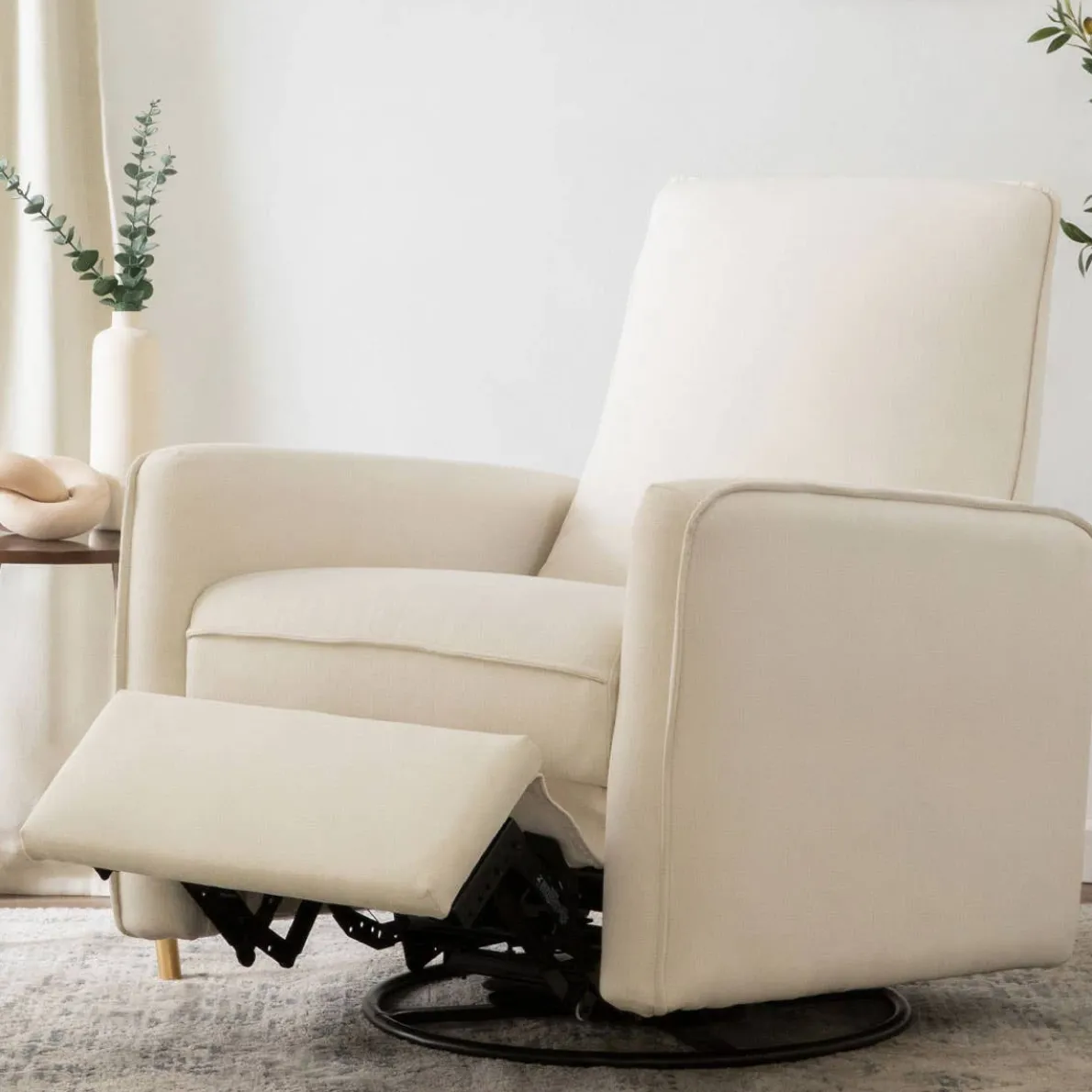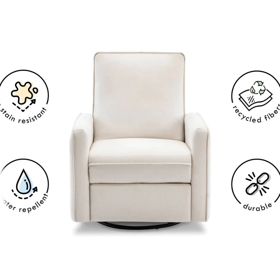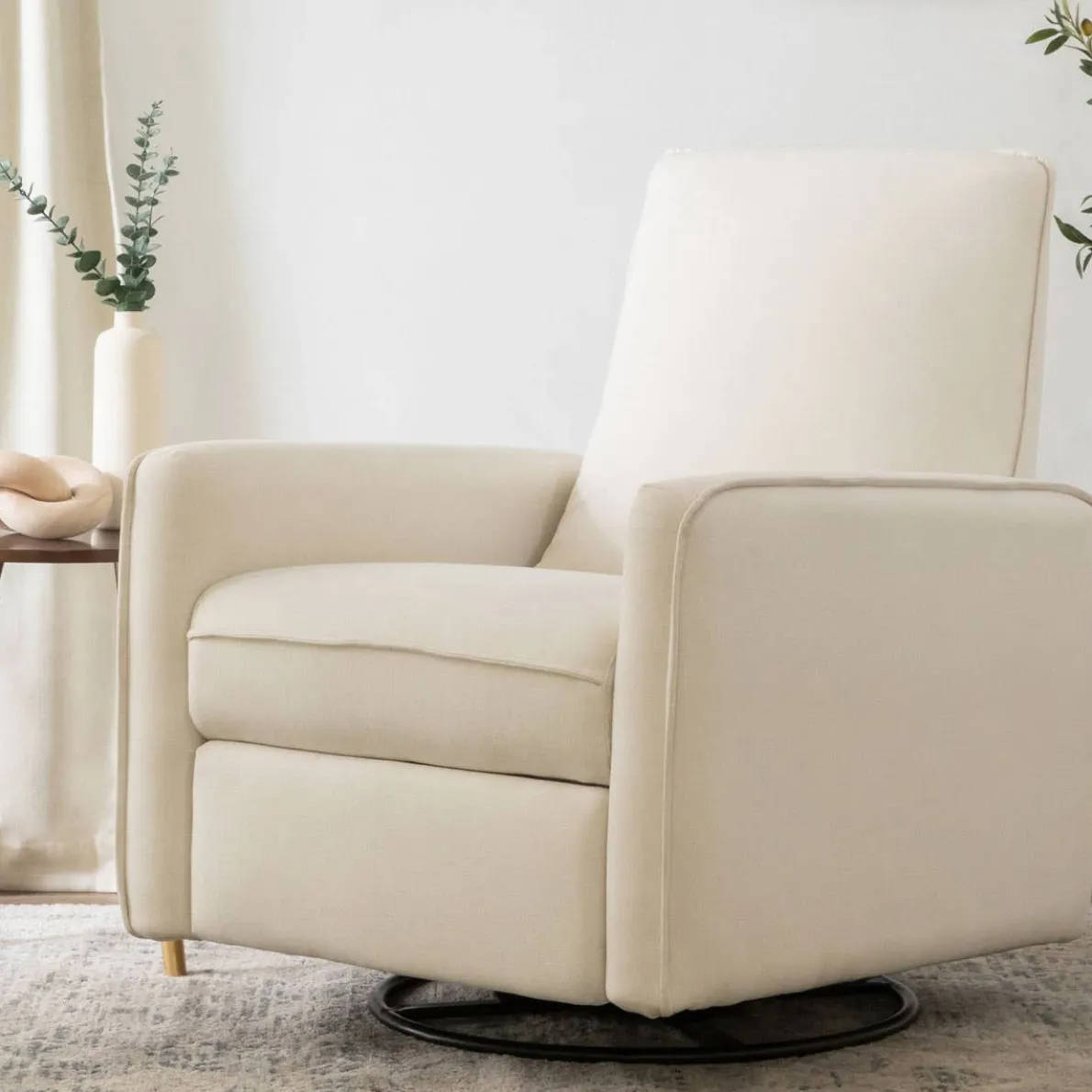 The Penny Swivel Recliner blends classic design with a contemporary silhouette. Outlined by delicate flange seams, the glider highlights subtle details, while its plush cushions offer a relaxing space throughout the day. With its timeless style, the Penny brings a versatile piece into the nursery that seamlessly transitions into your living spaces as your baby grows.