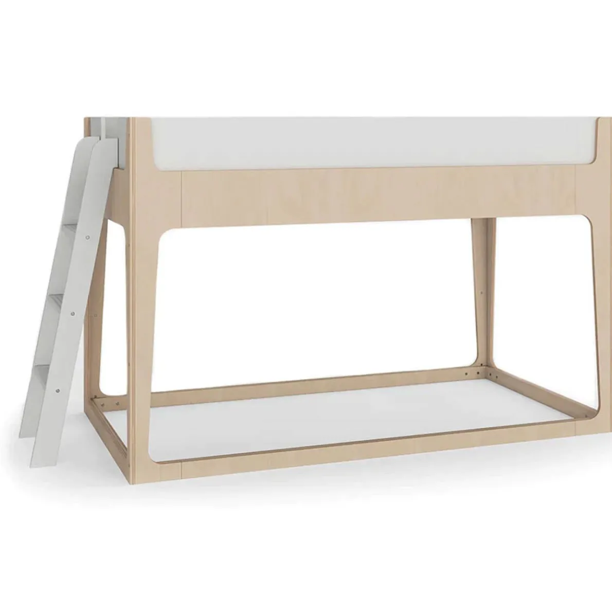 As a loft bed with ladder, children ages 6+ can sleep on the top bunk, with either a play space or a floor-level mattress below, and As a canopy bed, it’s perfectly cozy and can fit an optional add-on trundle bed below.