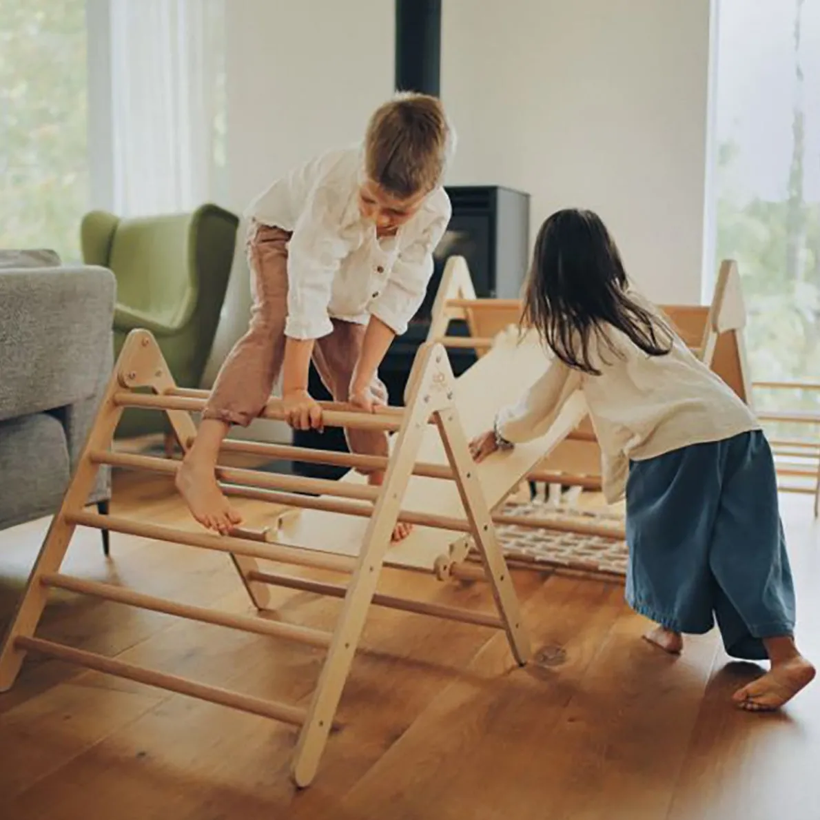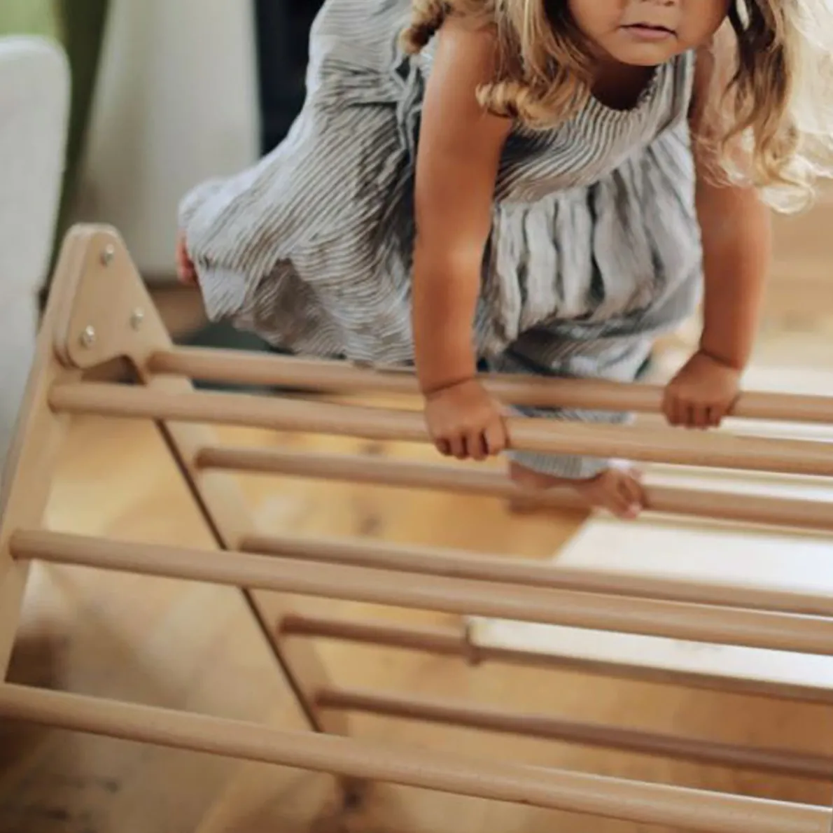 The MEDIUM Pikler Triple Climber Triangle features 2 sides with climbing dowels and is collapsible for easy storing. Crafted using responsibly-sourced birch plywood and beech wood, it’s a wonderful sustainable option for mobile little ones exploring their adventurous side. Through physical developmental play with the Pikler system, children gain muscular and cardiovascular strength, build self-esteem, improve gross motor skills and explore their imagination simultaneously.