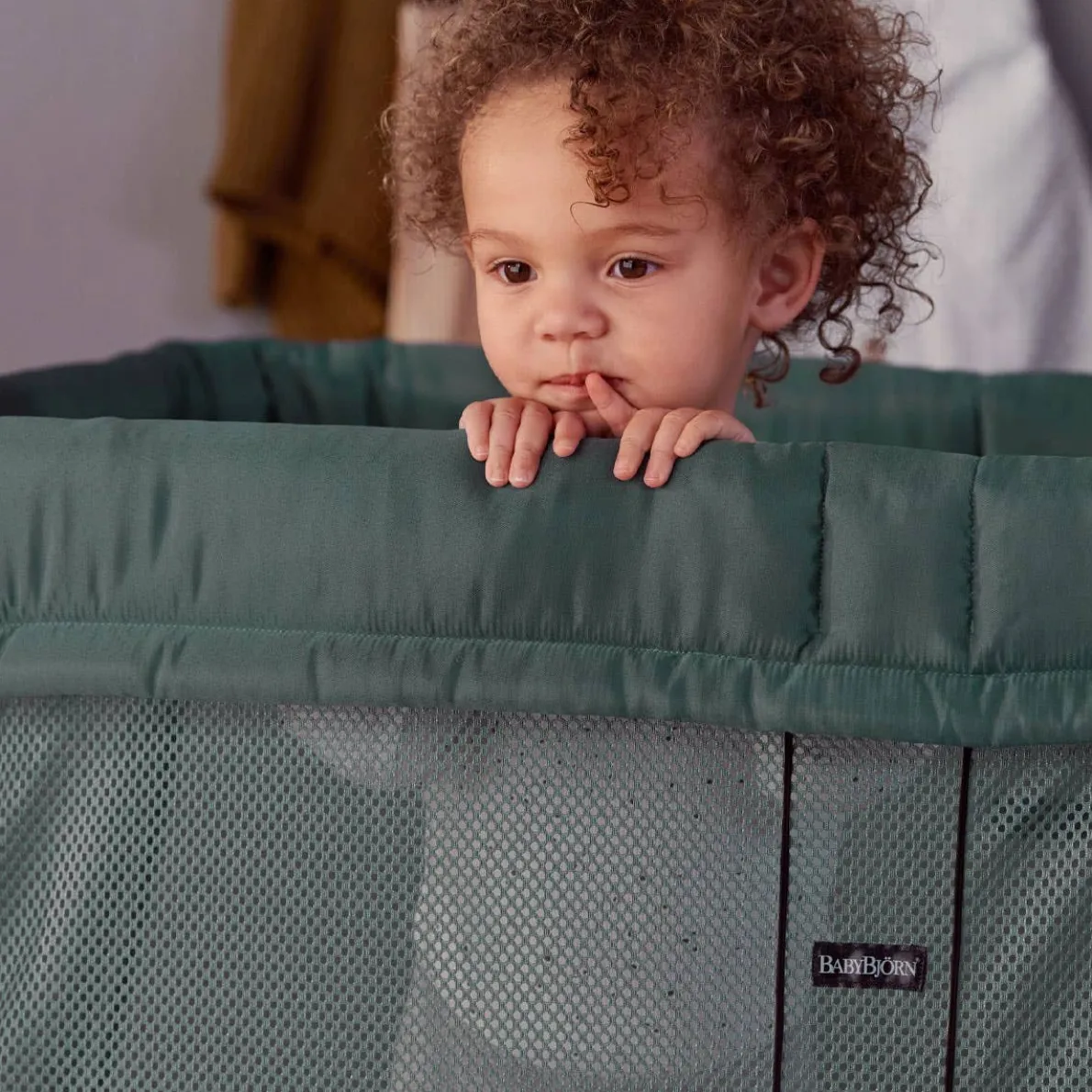 Easy set-up and fold up, the super lightweight Baby Bjorn Play Yard Light is perfect for home and travel. Just open the bag, lift out the play yard and set it up in one simple movement. There are no loose parts to attach. The legs unfold automatically and once you have put the mattress in you have a stable play yard to use at home or on trips. When you are not using it, simply fold it up and store it in the practical bag.