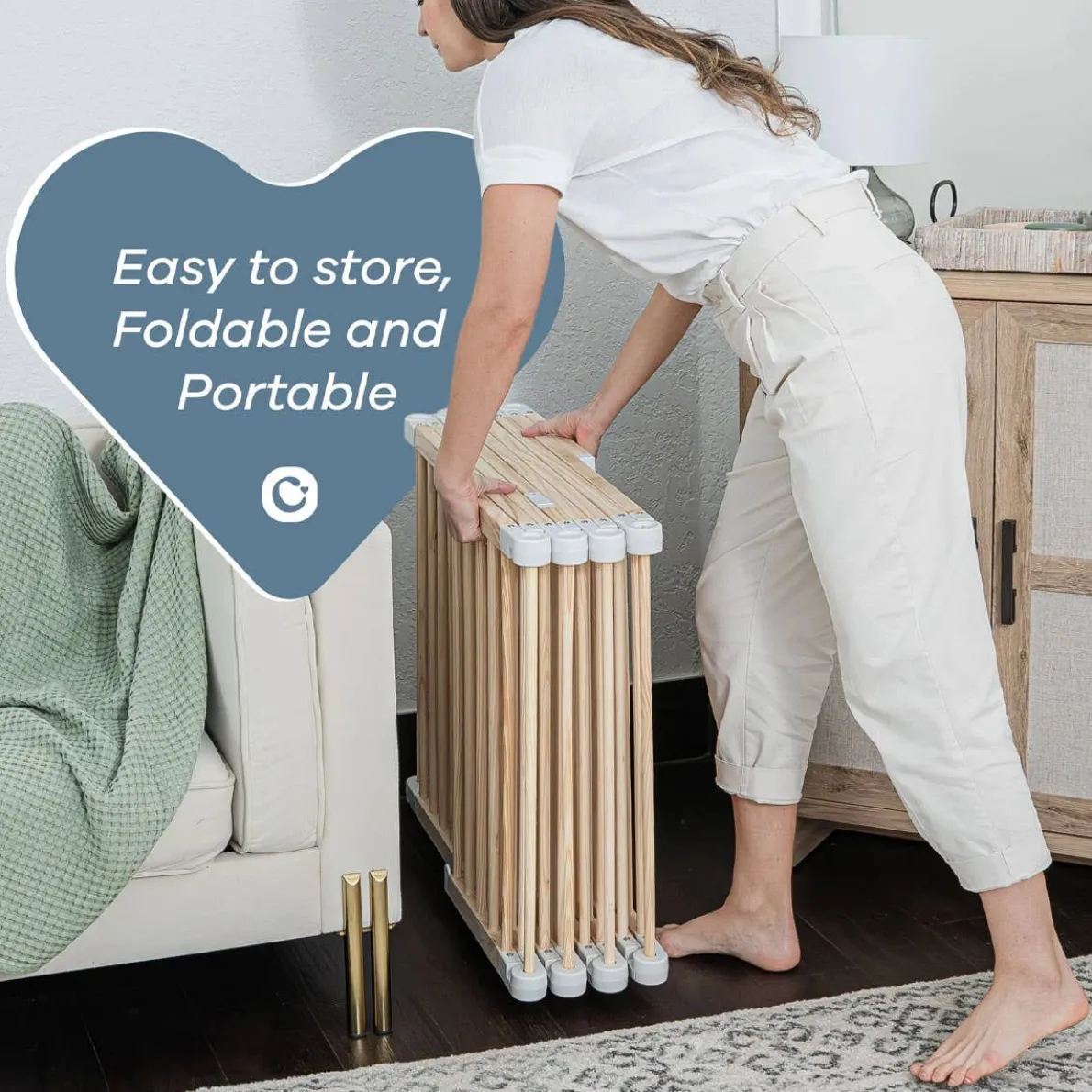 The Comfy Cubs Baby Play Pen stands as a testament to safety and convenience. Crafted from natural pine wood, it exudes a smooth touch, ensuring your child is surrounded by an environment devoid of toxins and harmful substances, as we’ve abstained from using varnishes or chemicals. Remarkably, it doubles as a baby gate and can seamlessly extend up to 228 inches, offering versatile safety coverage suitable for both cozy and spacious rooms.
