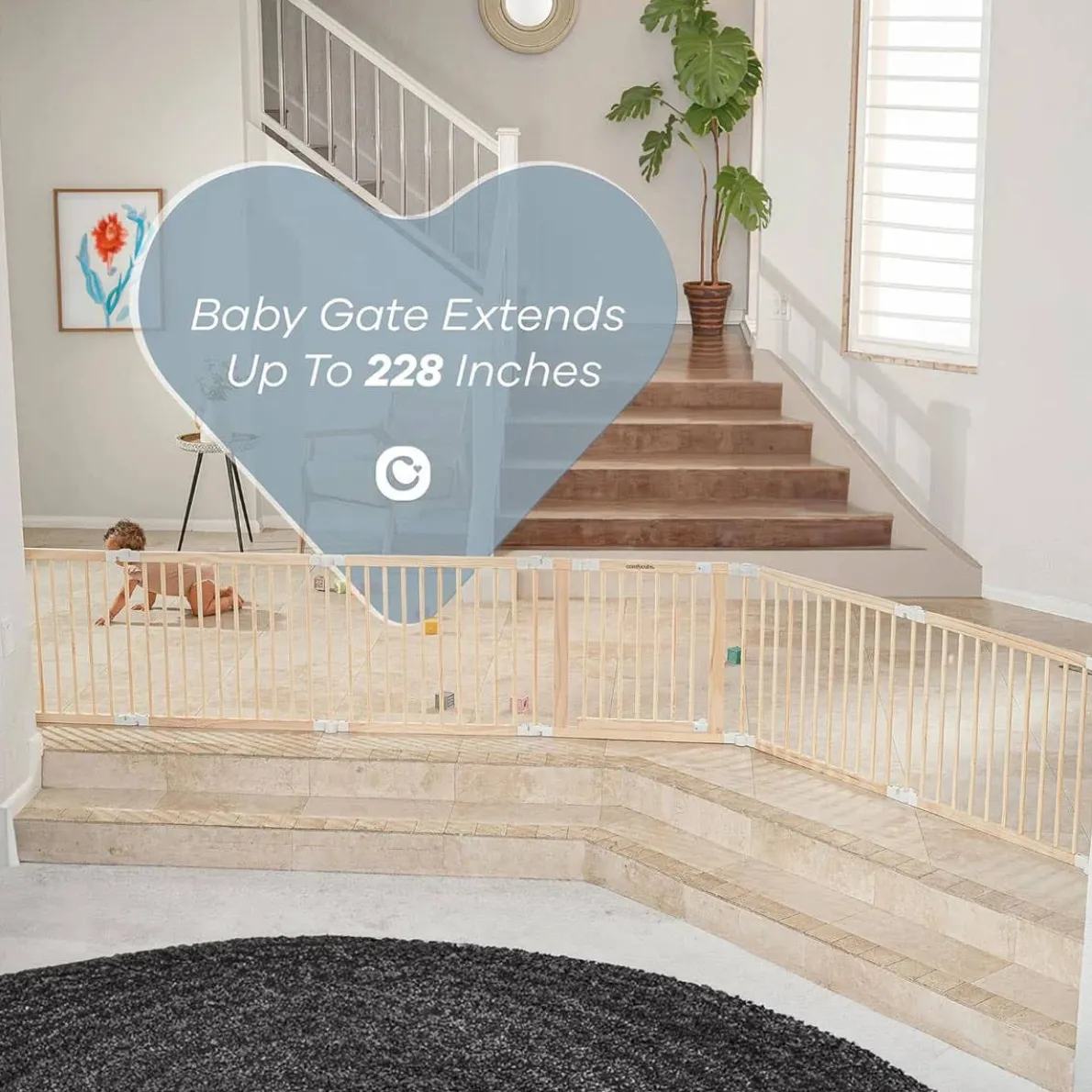 - Baby Gate Extends up to 228 inches : Boasting a remarkable length, this product can extend up to 228 inches when fully opened as a gate. This feature ensures versatility and comprehensive safety coverage, perfect for both small and large spaces.
