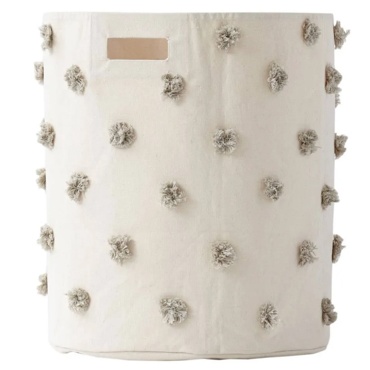 Pehr hampers are designed to hold clothes, mitts, boots, trucks, balls, blocks, swim suits, beach gear, and everything in between. With each Pom Pom sewn by hand, our Pom Pom Hampers beautiful and practical.