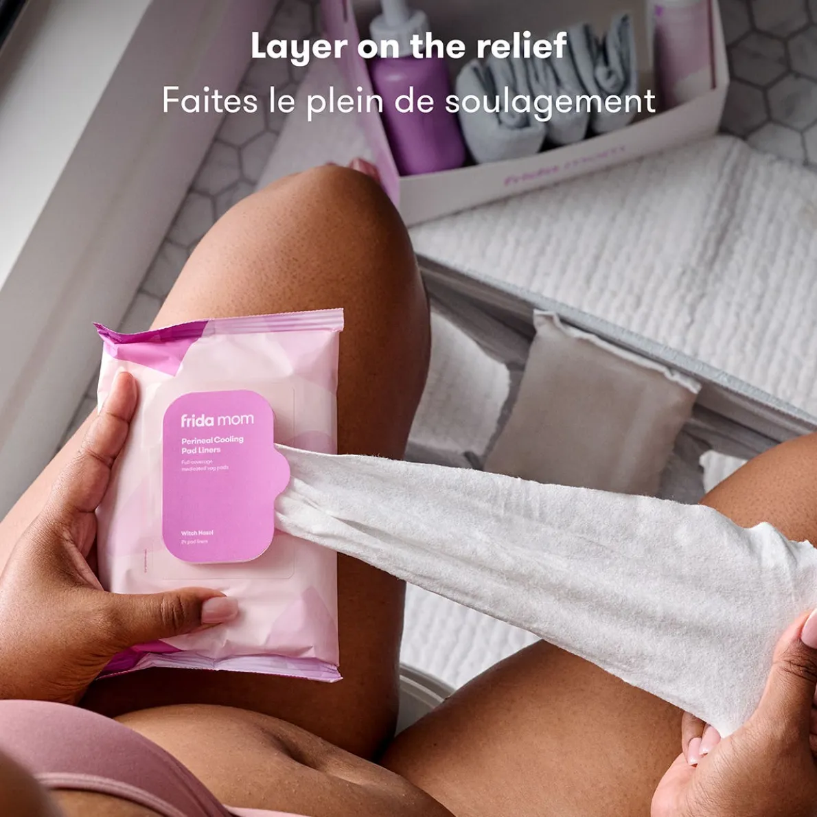 - POSTPARTUM RECOVERY REGIMEN: For postpartum care, this kit includes steps 2 – 5 of the Frida Mom 5-step Postpartum Recovery Regimen to cool, absorb, soothe and relieve pain in the perineal area.