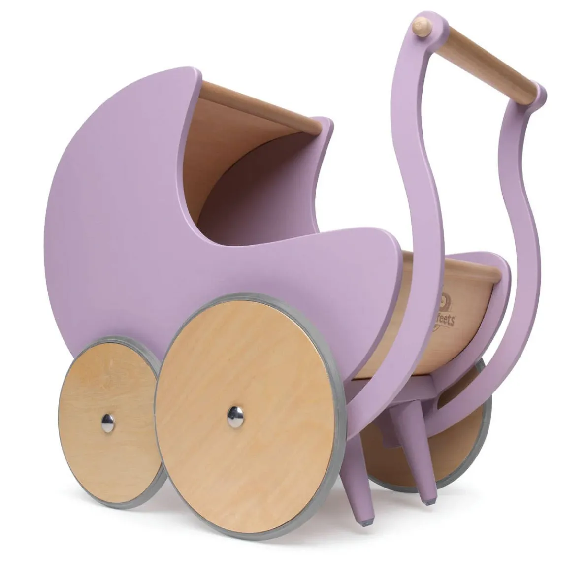 Handmade with replenishable birch wood, fitted with large wheels that have rubber trim to prevent scratches and sitting at a handlebar height of 17 inches (35 centimeters), the Kinderfeets Pram 2-in-1 Walker is a unique option for newly active children.