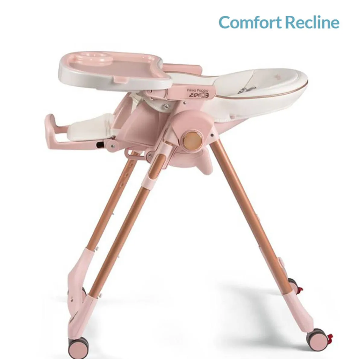 Prima Pappa Zero-3. It’s worth more because it gives you more.The Prima Pappa Zero 3 is the latest addition to the Peg Perego family. Ultra light and yet multi-functional it grows with your child from 0 to 3 years of age. During the first months, it is a comfortable recliner. As baby grows, it can be used as a high chair for feeding and playing. The removable tray and different height settings allows baby to sit with you at the table.