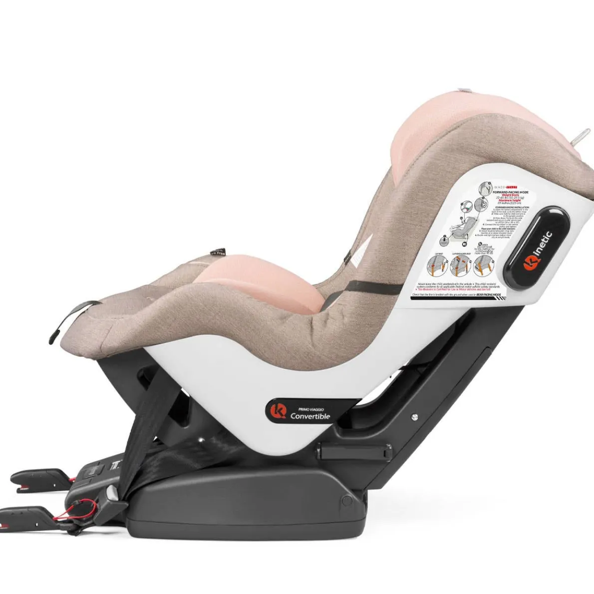 A new level of protection in the Primo Viaggio Convertible car seat. Now available with Anti-rebound Bar and Kinetic Pods. The Primo Viaggio Convertible Kinetic follows child from infancy through toddlerhood by converting from a rear-facing to a forward-facing car seat. Provides maximum safety and height adjustable Side Impact Protection.