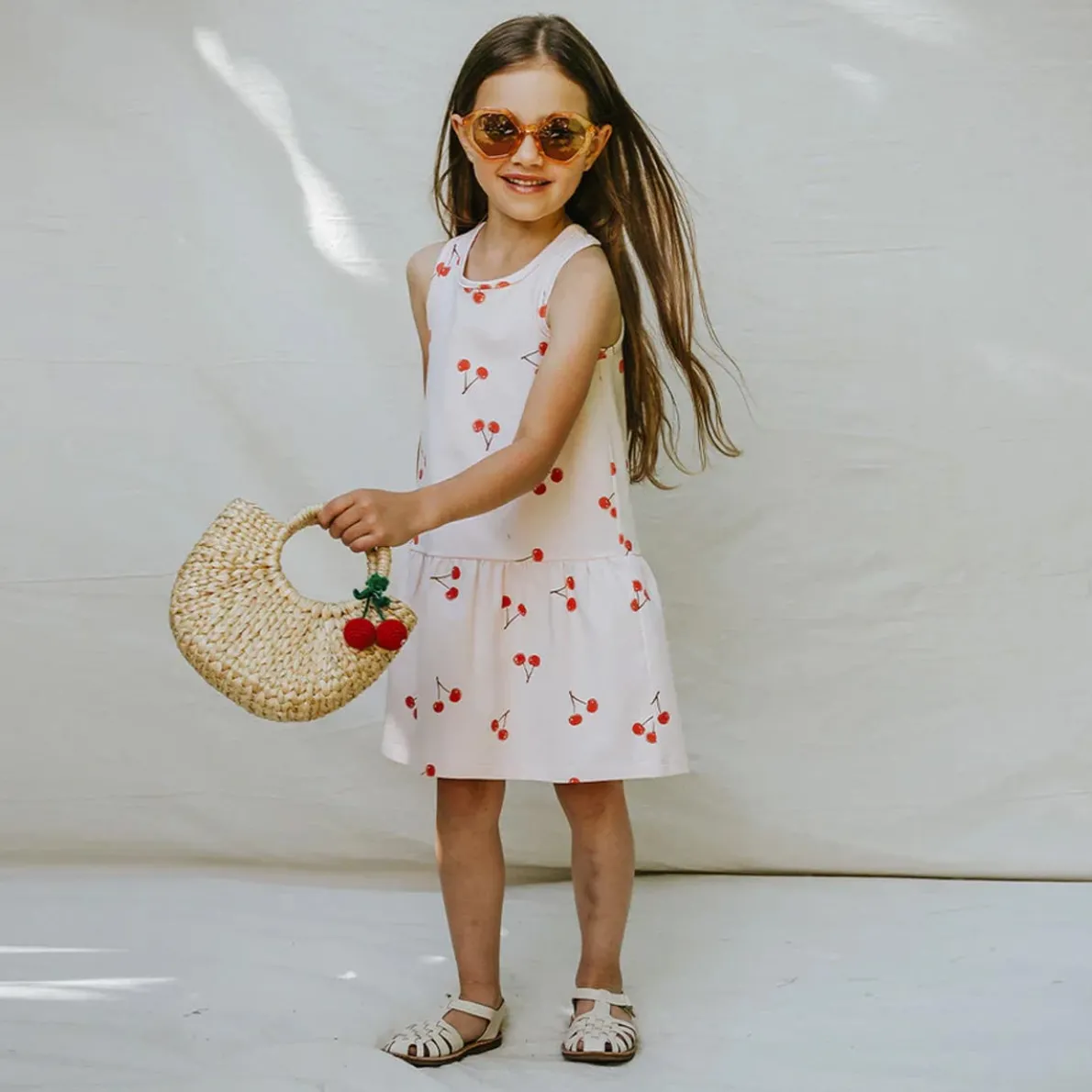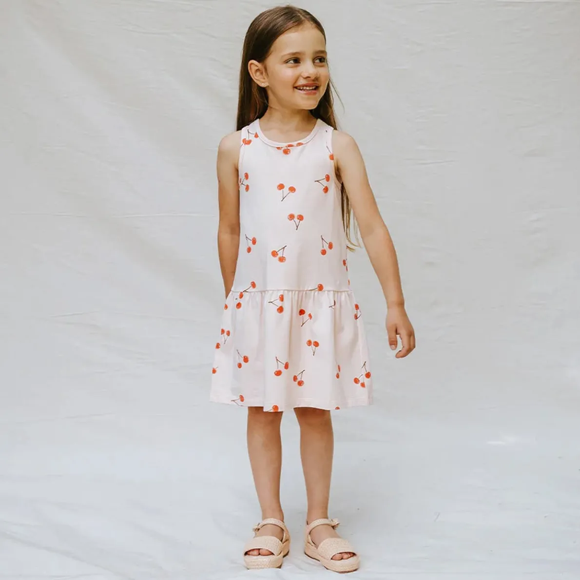 This pretty-in-pink dress with our all-over Cherry print is perfect for a visit to the ice cream parlour. With a tank-top style that’s gathered at the back, the dress has a casual fit that keeps her cool on hot days. Twirling is made even more fun with the tiered skirt that swirls in zthe breeze. Made from organically grown cotton jersey, it has good stretch and flexibility while helping to keep her comfortable throughout the day.