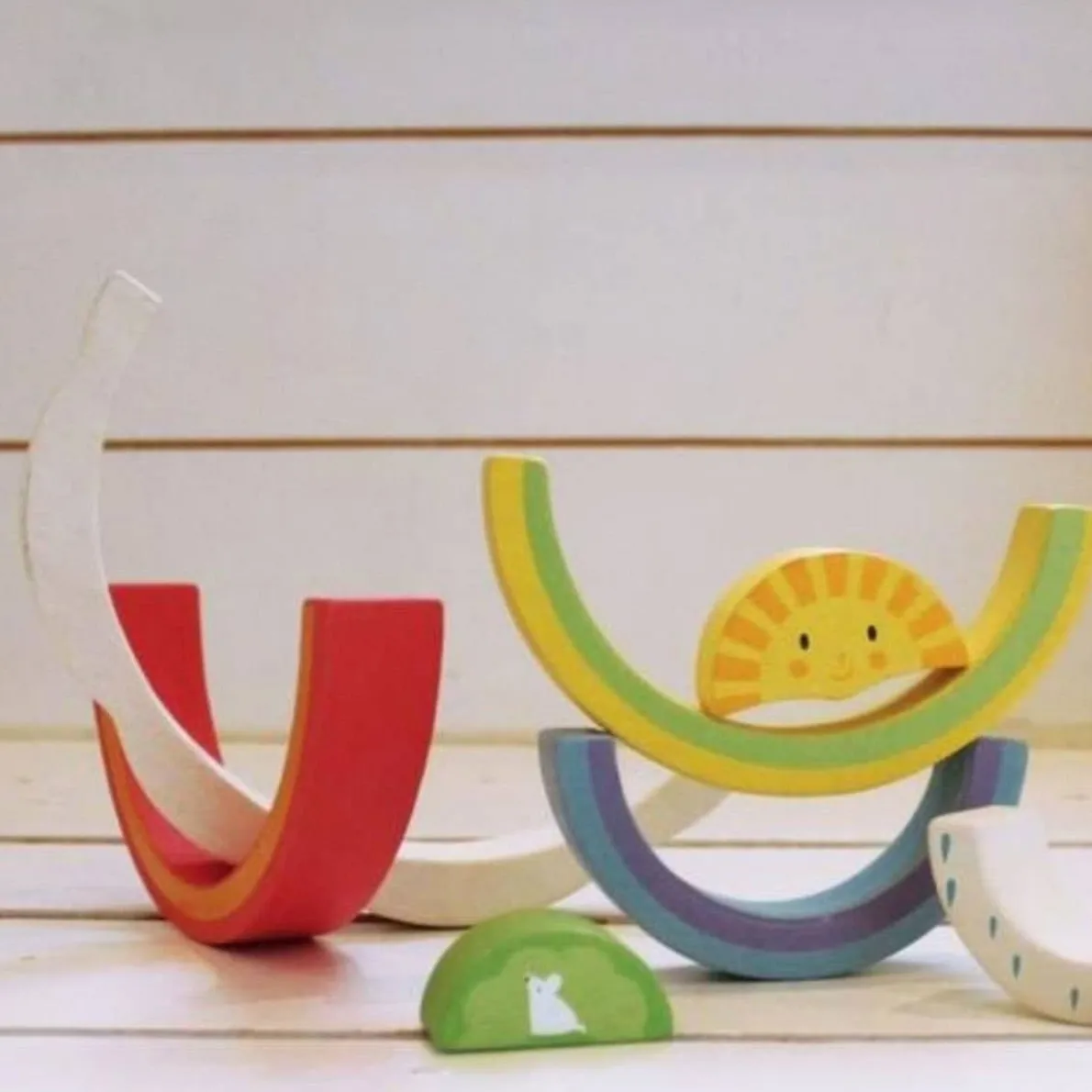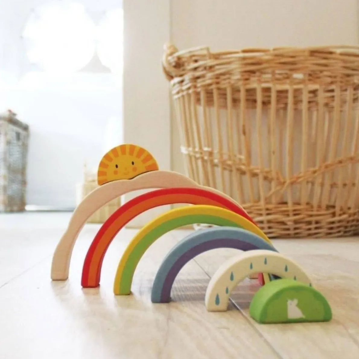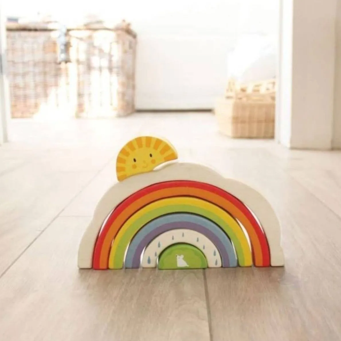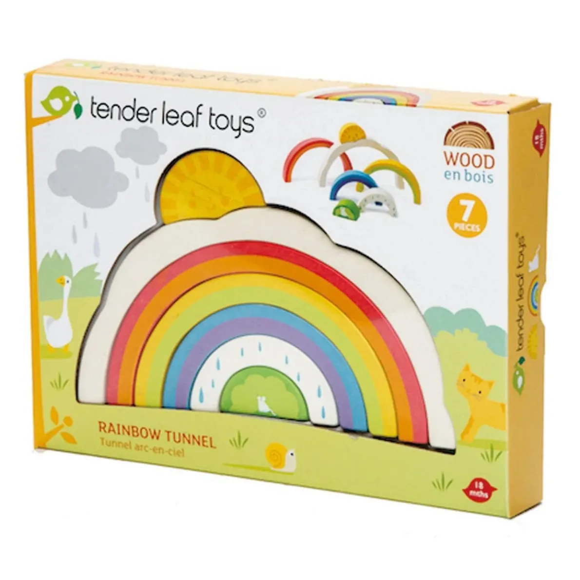 Stack these tunnel pieces together to make a real rainbow! A great first puzzle for your toddler to develop their matching skills, size and color recognition.