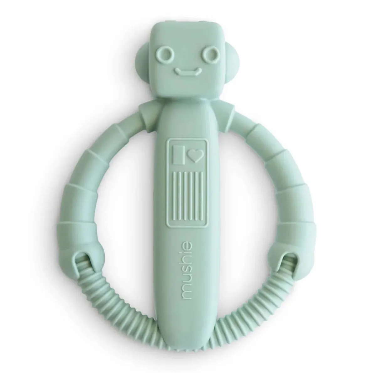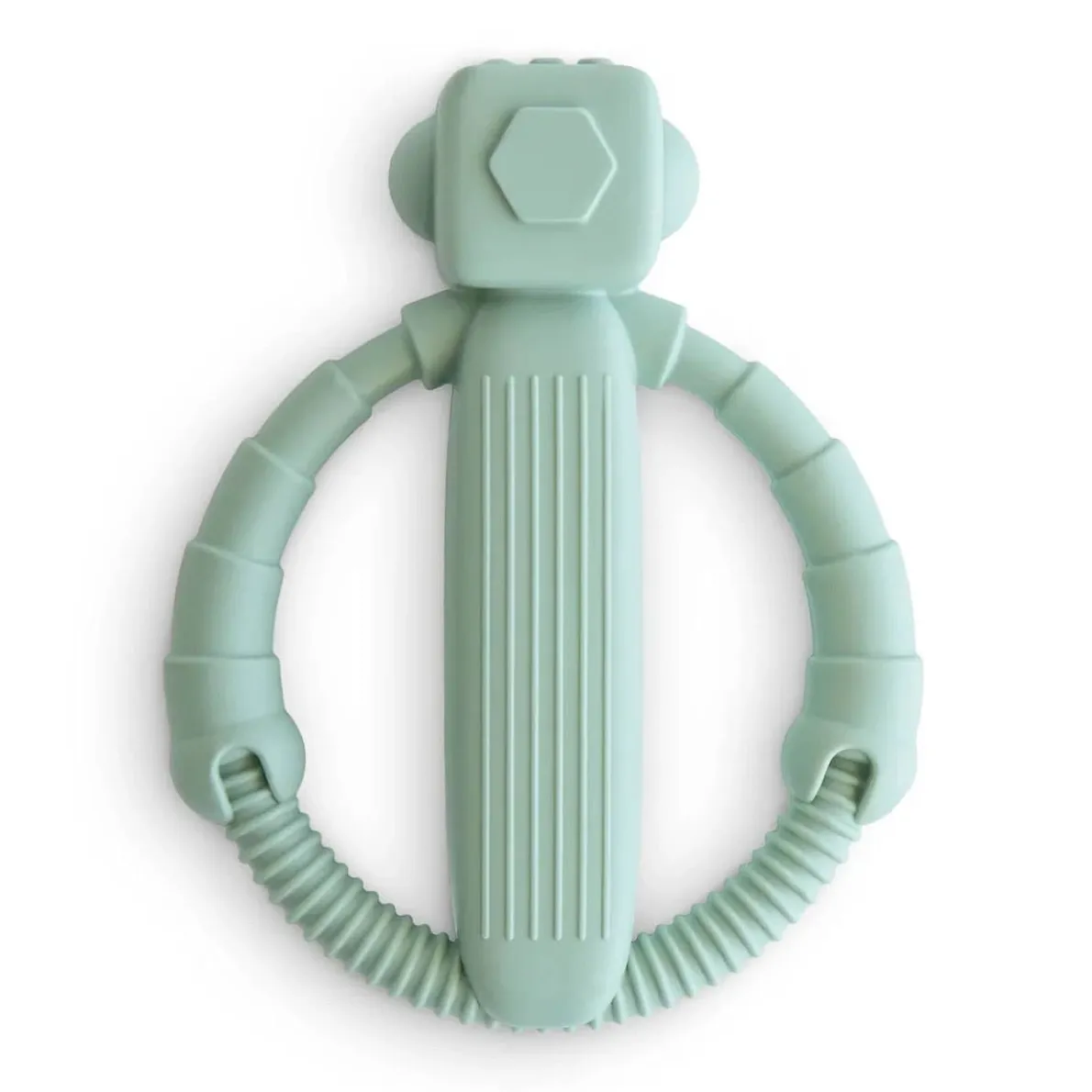 Inspired by outer space and technology, designed with functionality and comfort in mind, the silicone Rocket and Robot Rattle Teether features a playful rocket shape and robot ship and built-in rattle. The cheerful sound engages baby’s auditory senses for added soothing relief.