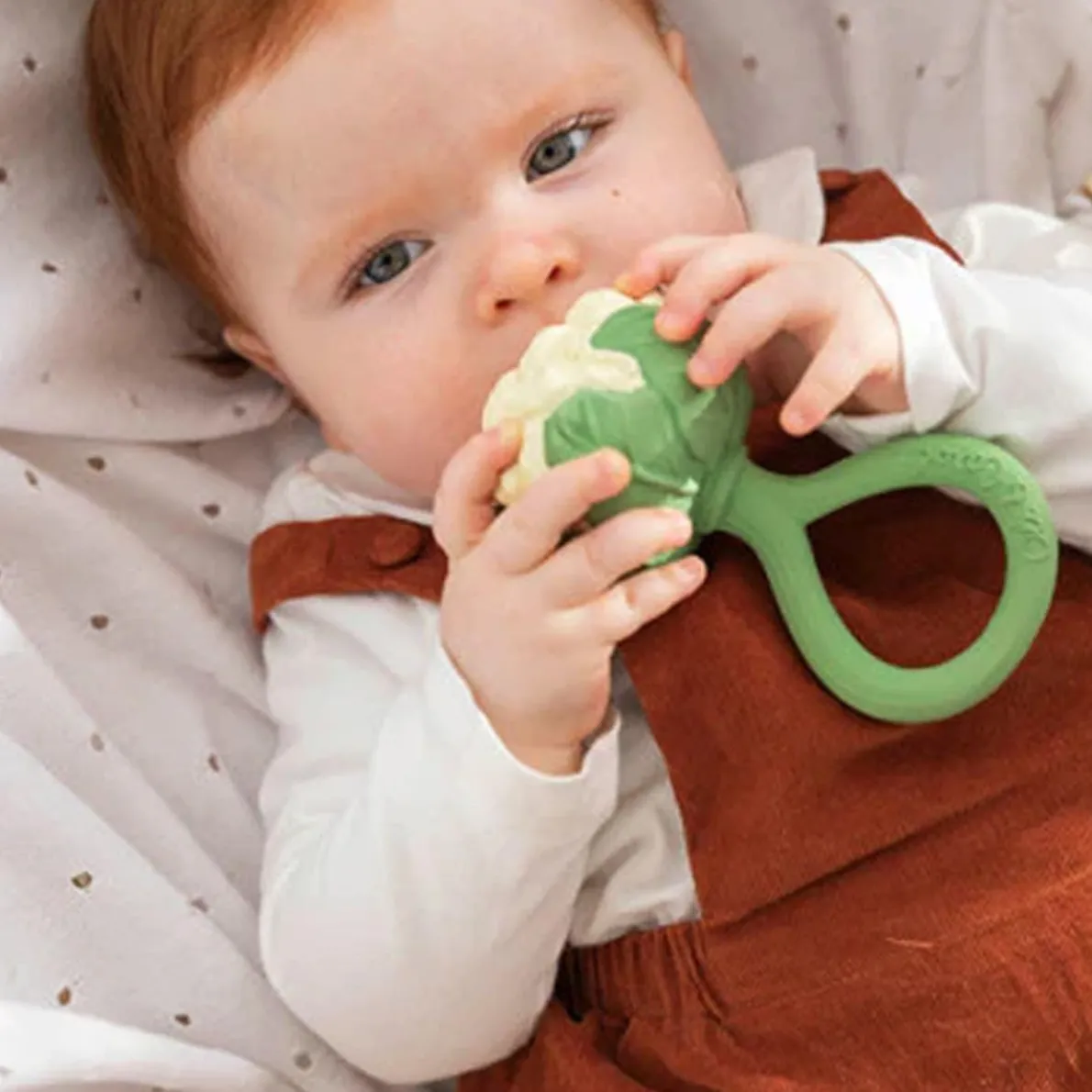 New revolutionary concept! Oli & Carol’s Rattle Toy is the GREENEST RATTLE IN THE MARKET! Its exterior is made of 100% natural rubber, and inside are upcycled cherry seeds that turn this teether into a rattle. 2 in 1!
