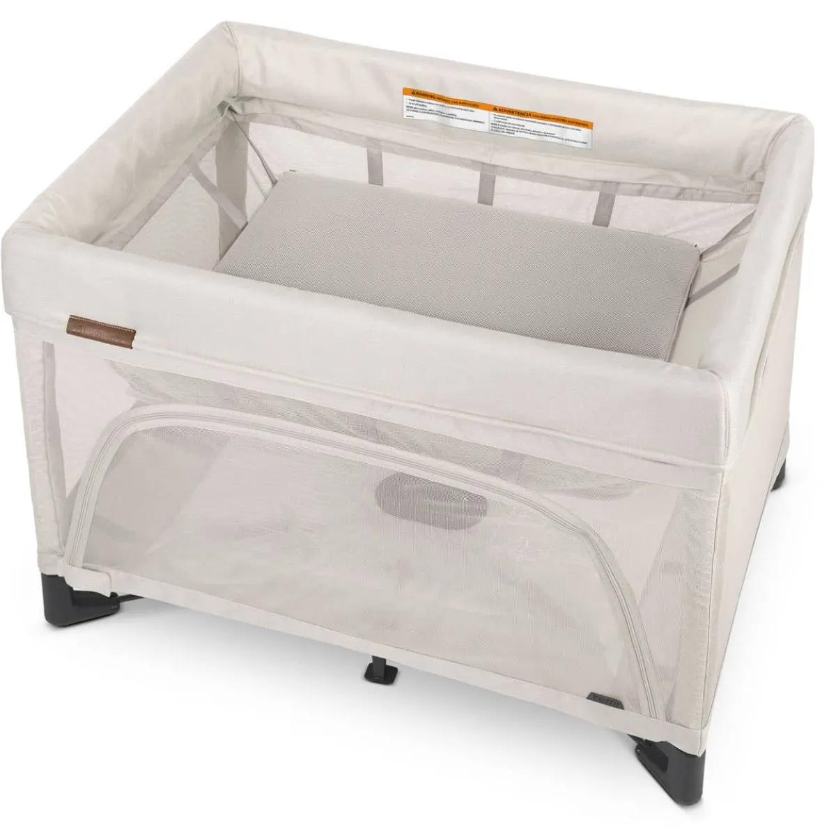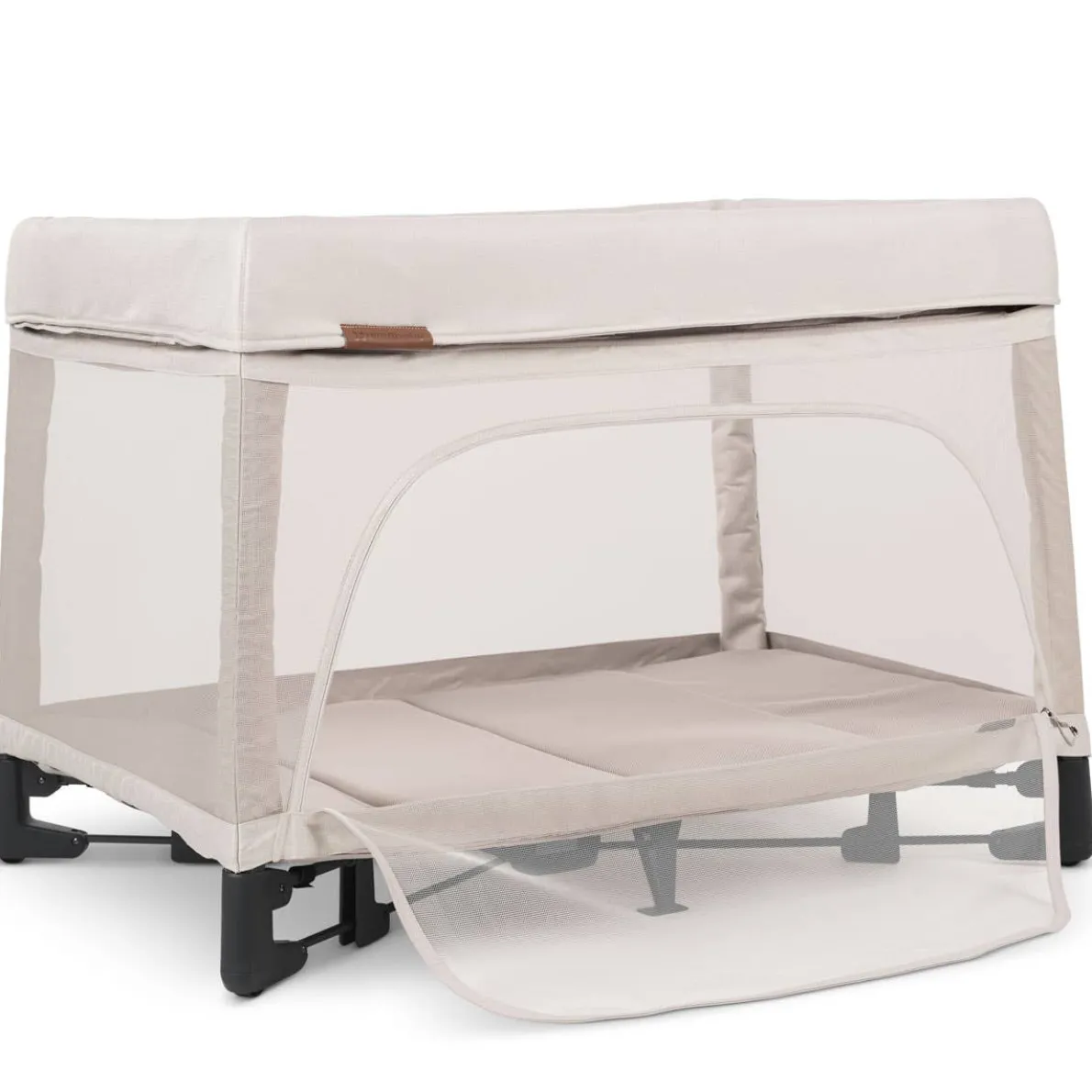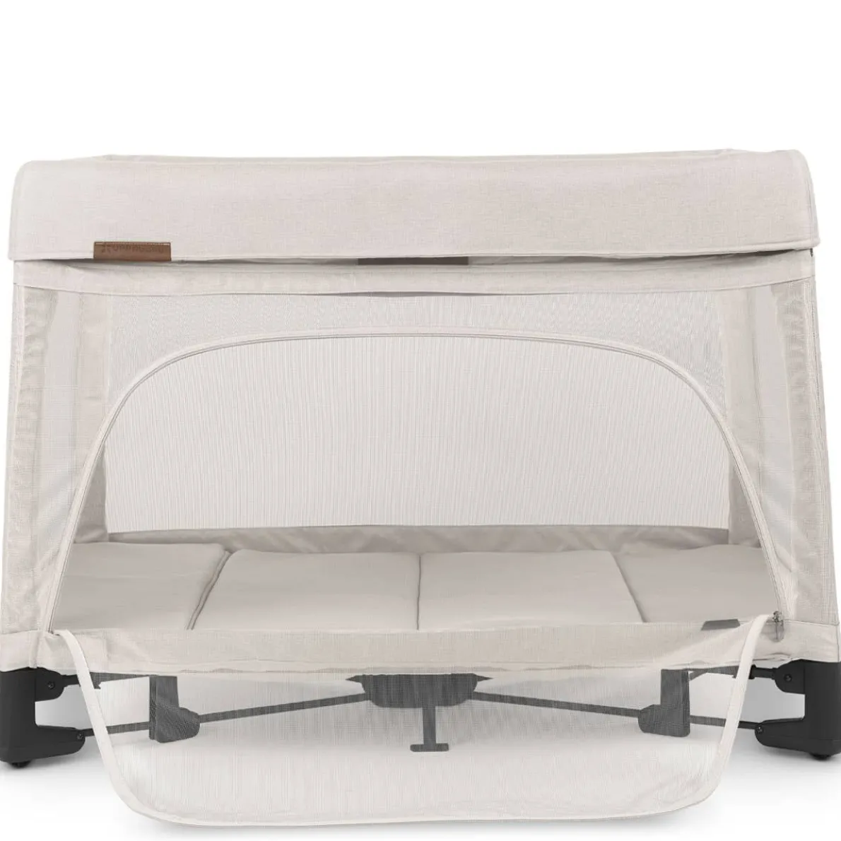 - Zip-on mesh bassinet provides a ventilated, elevated bedside solution