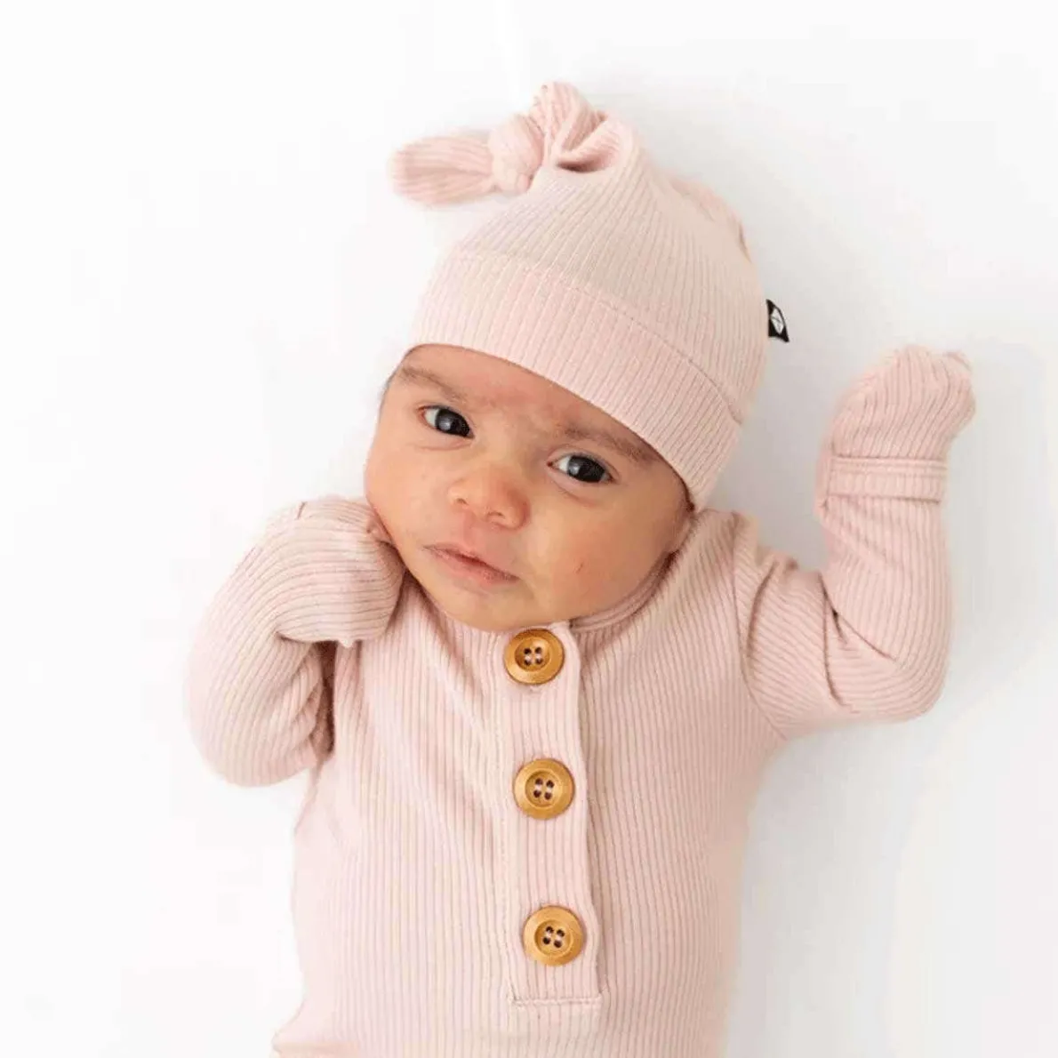 - Matching knotted cap in ribbed bamboo fabric