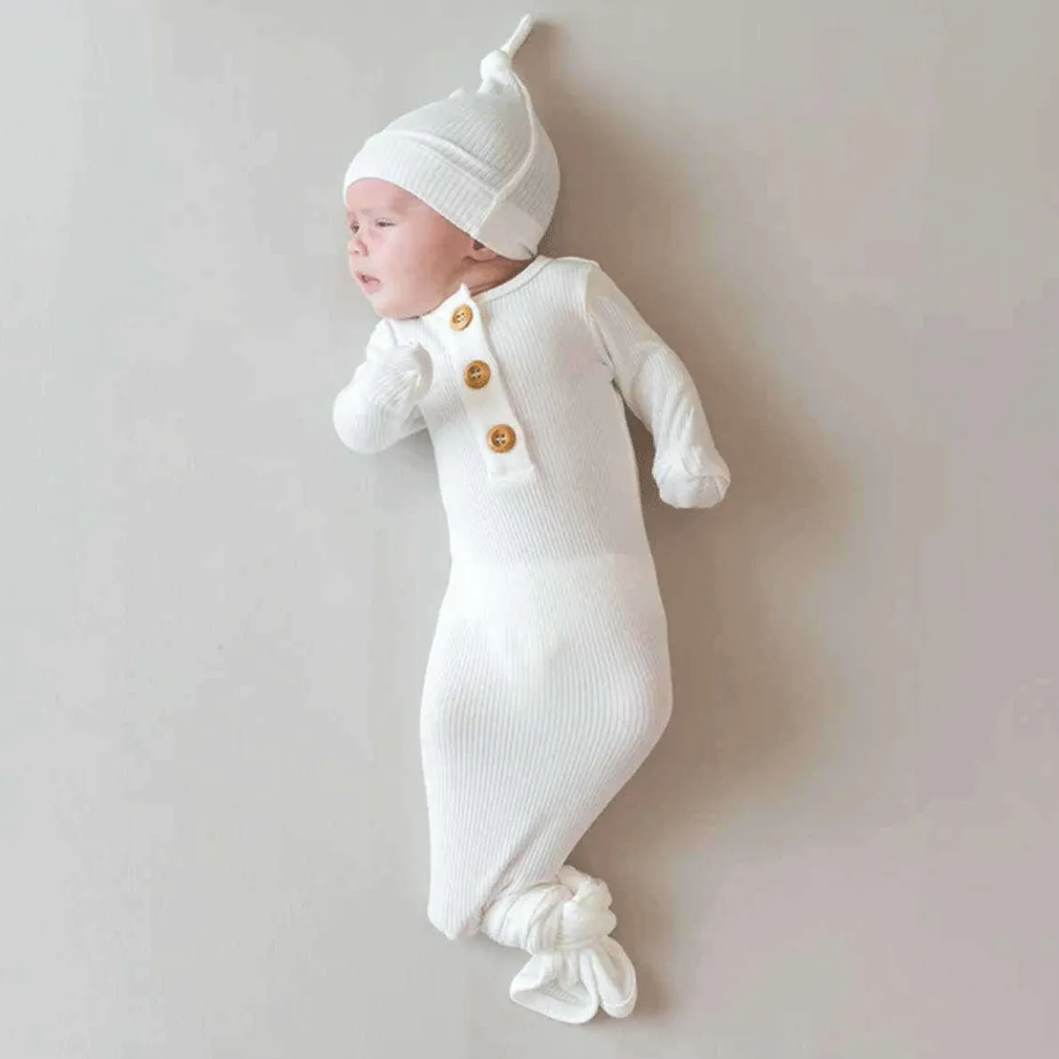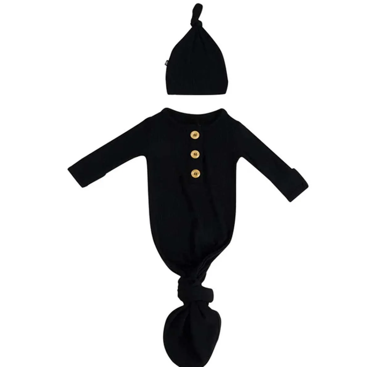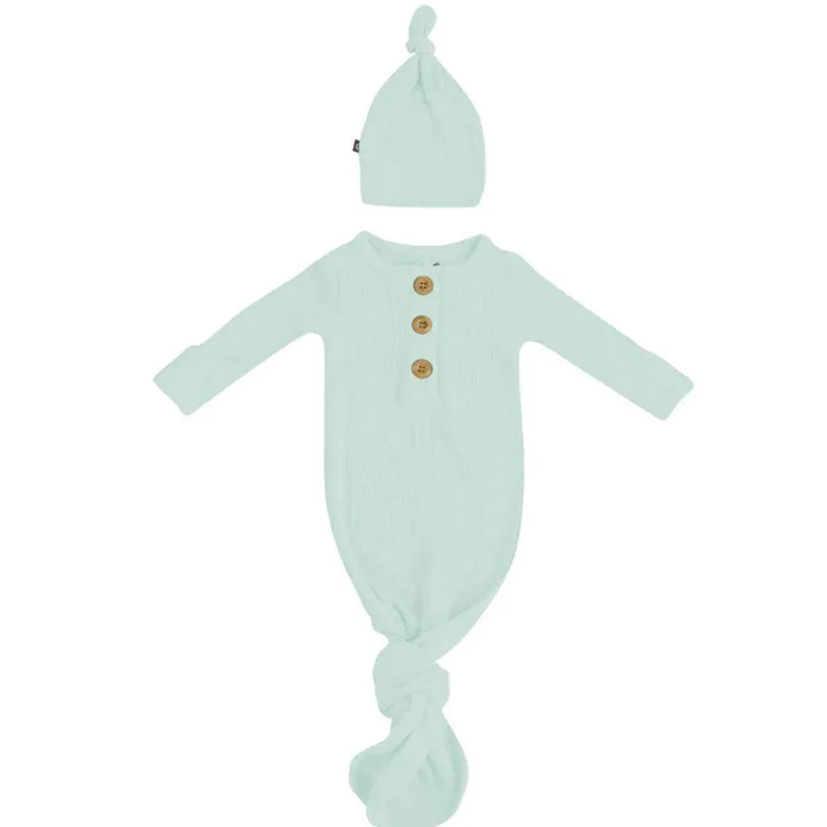 This all-in-one outfit is the softest newborn essential designed with both you and your baby in mind. Crafted from soft, stretchy ribbed bamboo, this gown features a tie bottom for easy diaper changes and comes with a knotted turban for the finishing touch to a classic look.