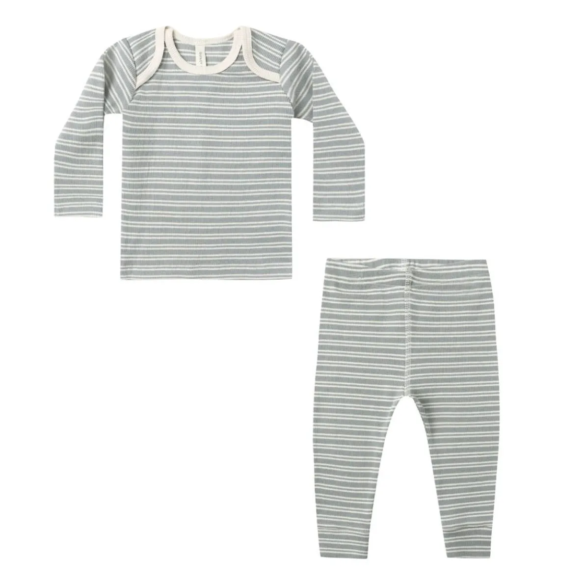 Slim-fit long sleeve tee and leggings set crafted from soft, stretchy rib knit.