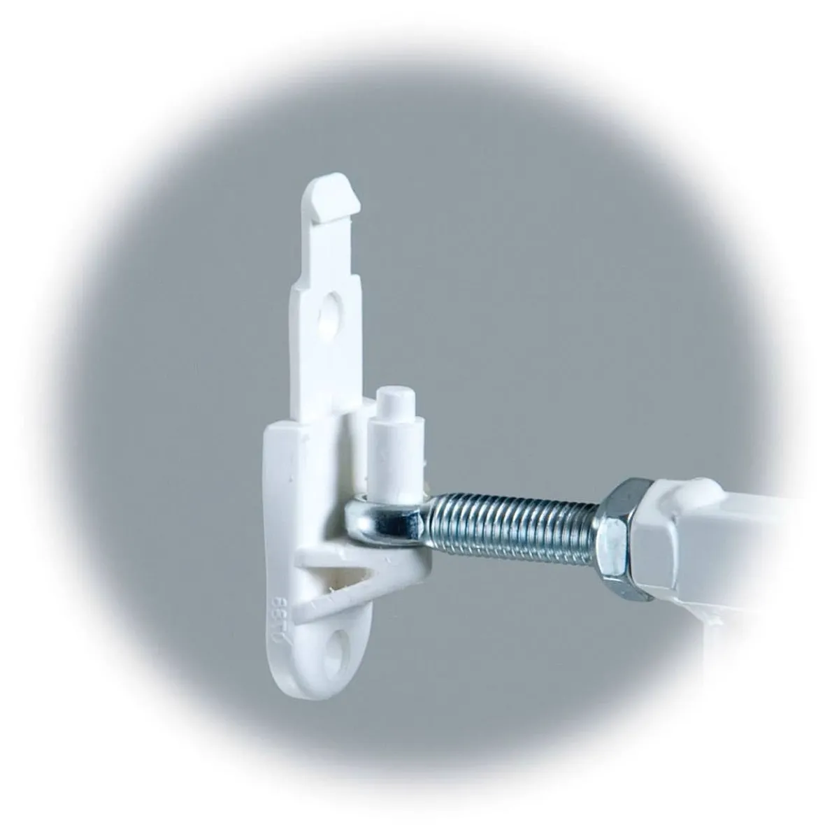 The KidCo® Safeway® baby safety gate is specifically designed for top of stairs use, but can also be used in hallways or as a room divider. Provides maximum safety at the top of stairs and in high traffic doorways. Features include stop pin to prevent gate from swinging over open stairs, quick release hardware and a mounting template for safe installation.