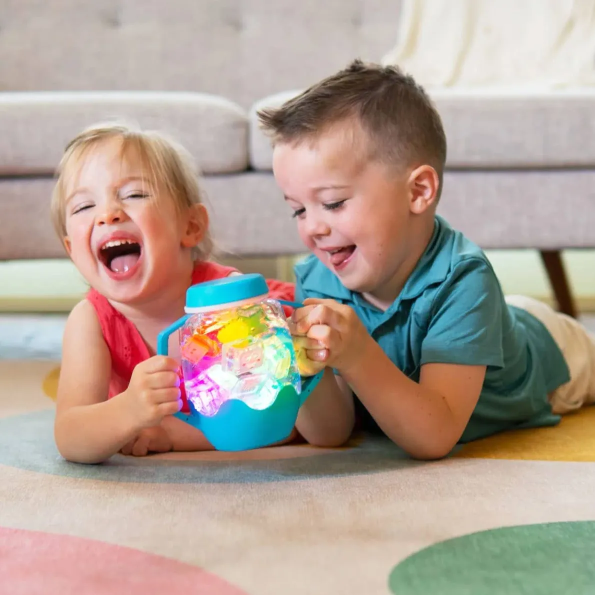 Pack some fun and adventure into your next outing with a Sensory Play Jar! Tap to change colors and make things even more fun by filling your Sensory Play Jar with our NEW magical Fun Fillers (not included) – all locked up tight with the spill-proof lid. With 5 different colors to choose from, you’ll be ready for all the sensory fun! (Just don’t forget the 3 AAA batteries – they’re not included.)