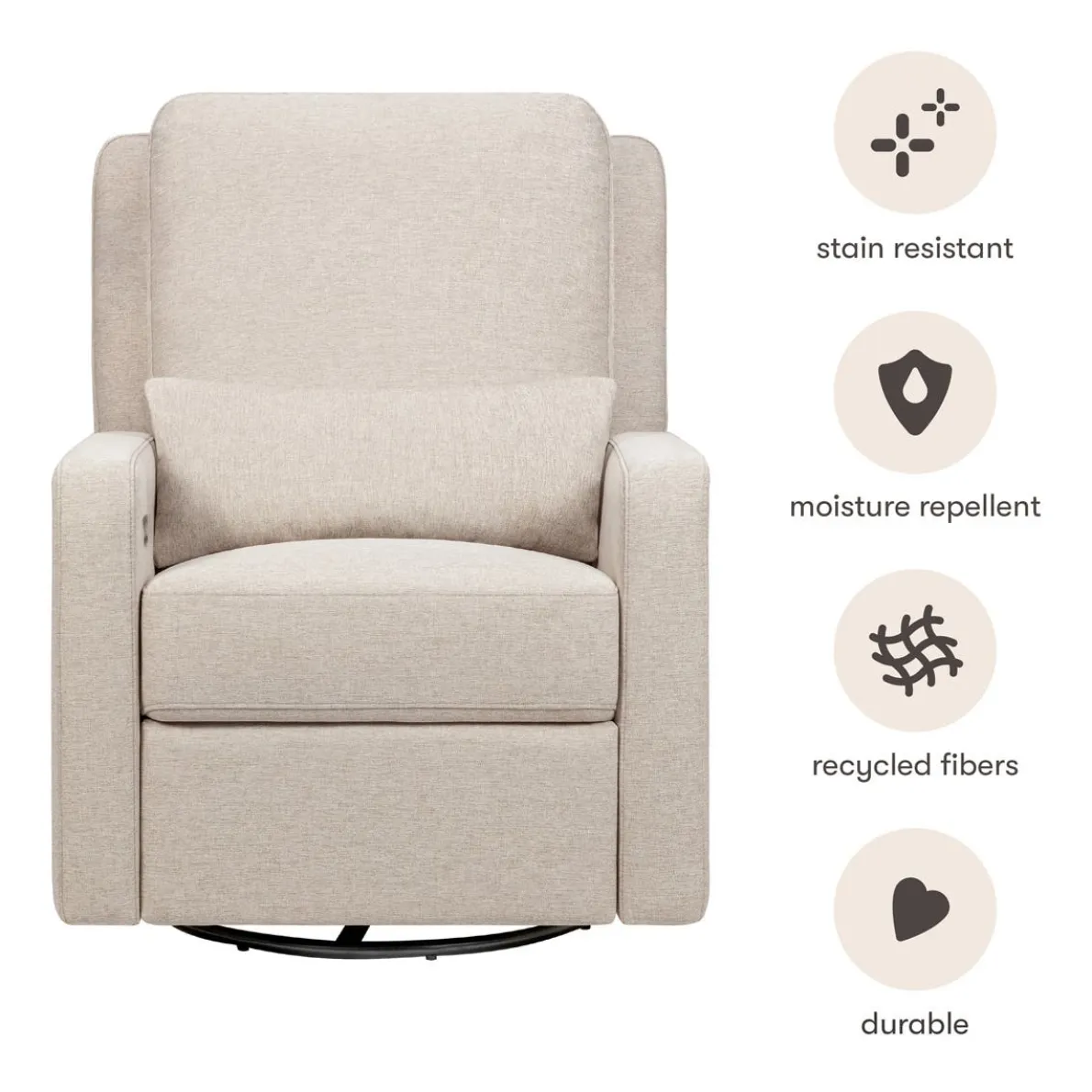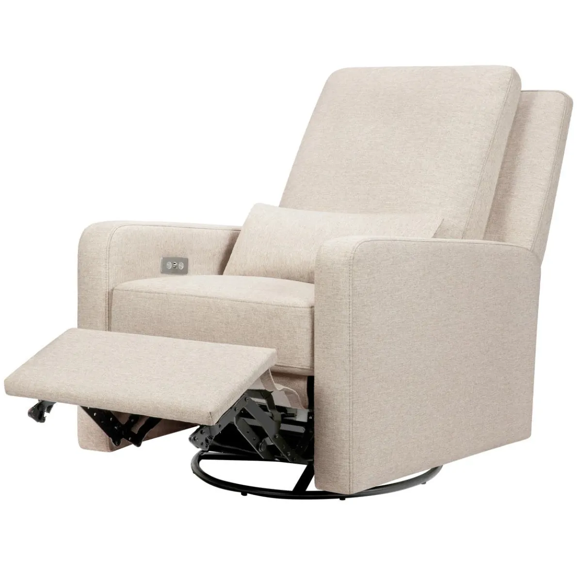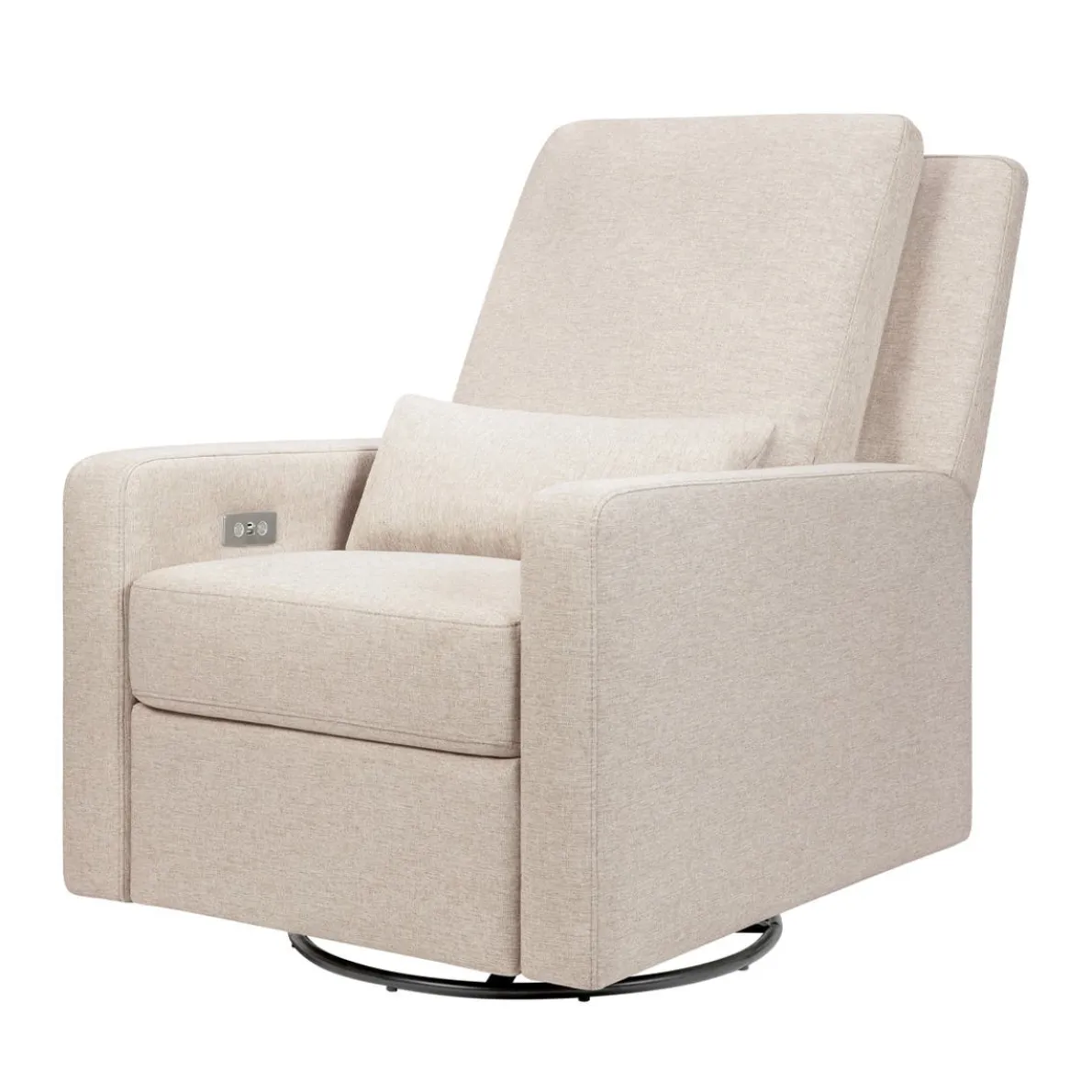 The Sigi Glider Recliner is a stylish choice with its crisp, modern design and comfortable seat on a metal base. Effortlessly glide back and forth in an upright position to rock your baby to sleep, or lean back and relax at the touch of a button with this recliner’s quiet electronic control button. Upholstered by hand in our eco-performance fabric that is stain resistant, water repellent, and made with at least 30% recycled fiber, it is a more sustainable choice for your baby and home.