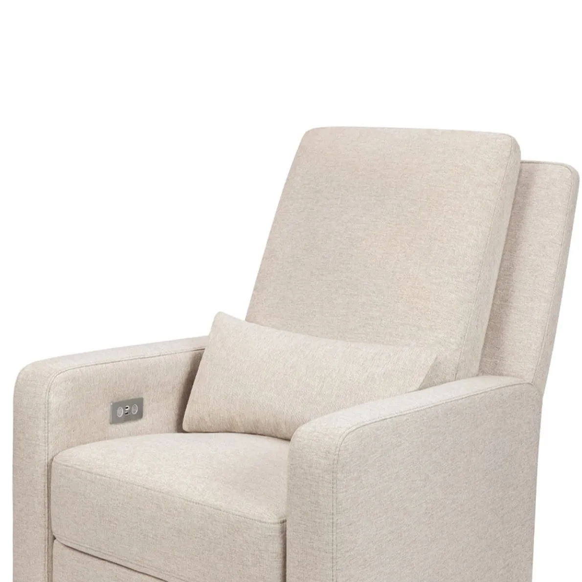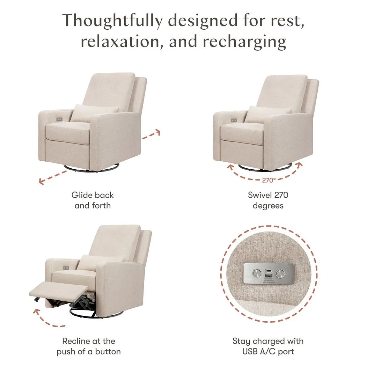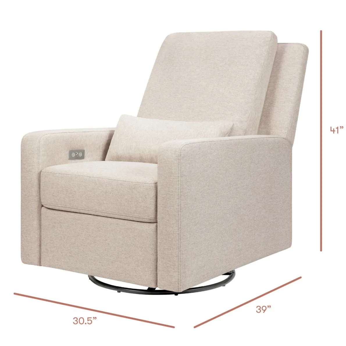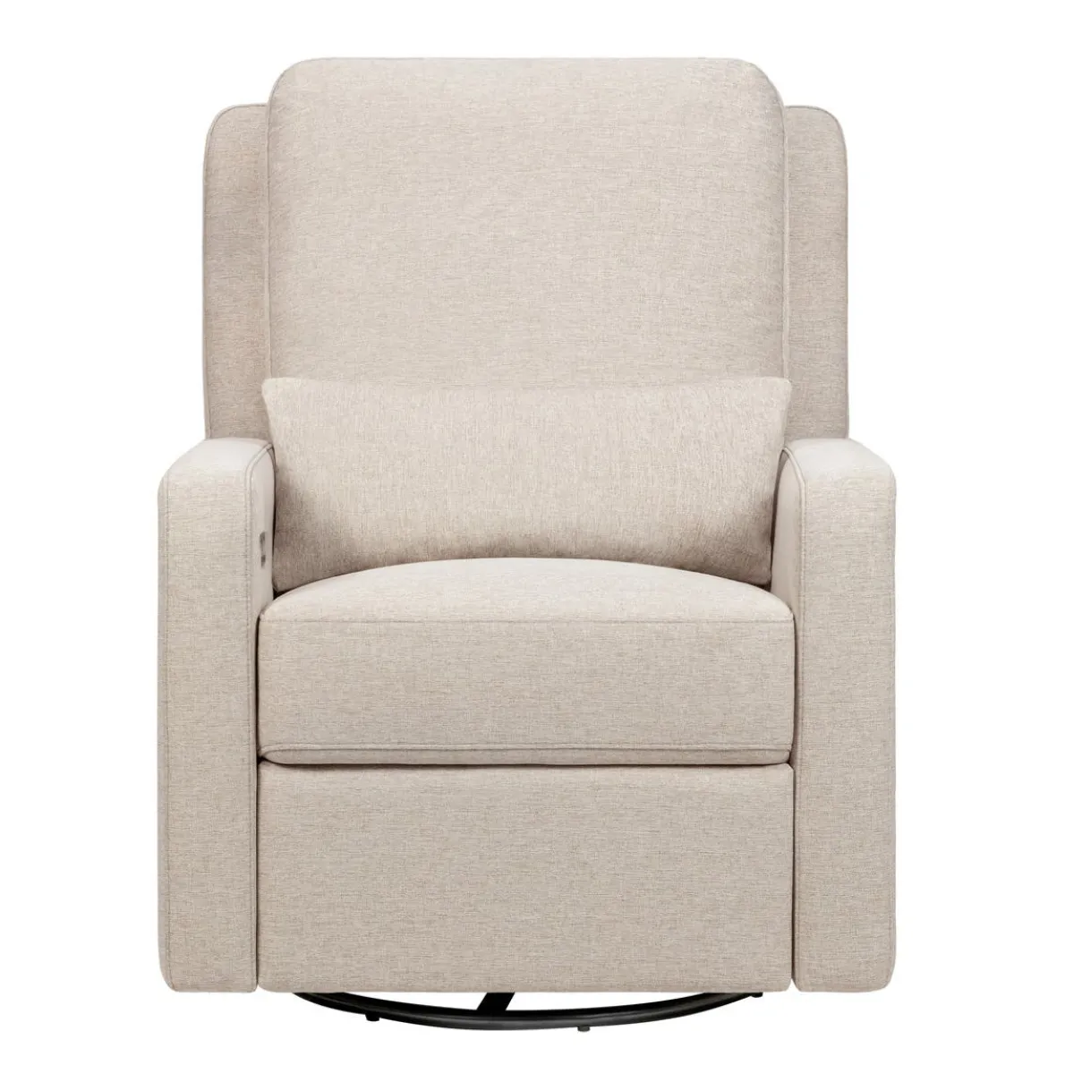 The Sigi Glider Recliner is a stylish choice with its crisp, modern design and comfortable seat on a metal base. Effortlessly glide back and forth in an upright position to rock your baby to sleep, or lean back and relax at the touch of a button with this recliner’s quiet electronic control button. Upholstered by hand in our eco-performance fabric that is stain resistant, water repellent, and made with at least 30% recycled fiber, it is a more sustainable choice for your baby and home.