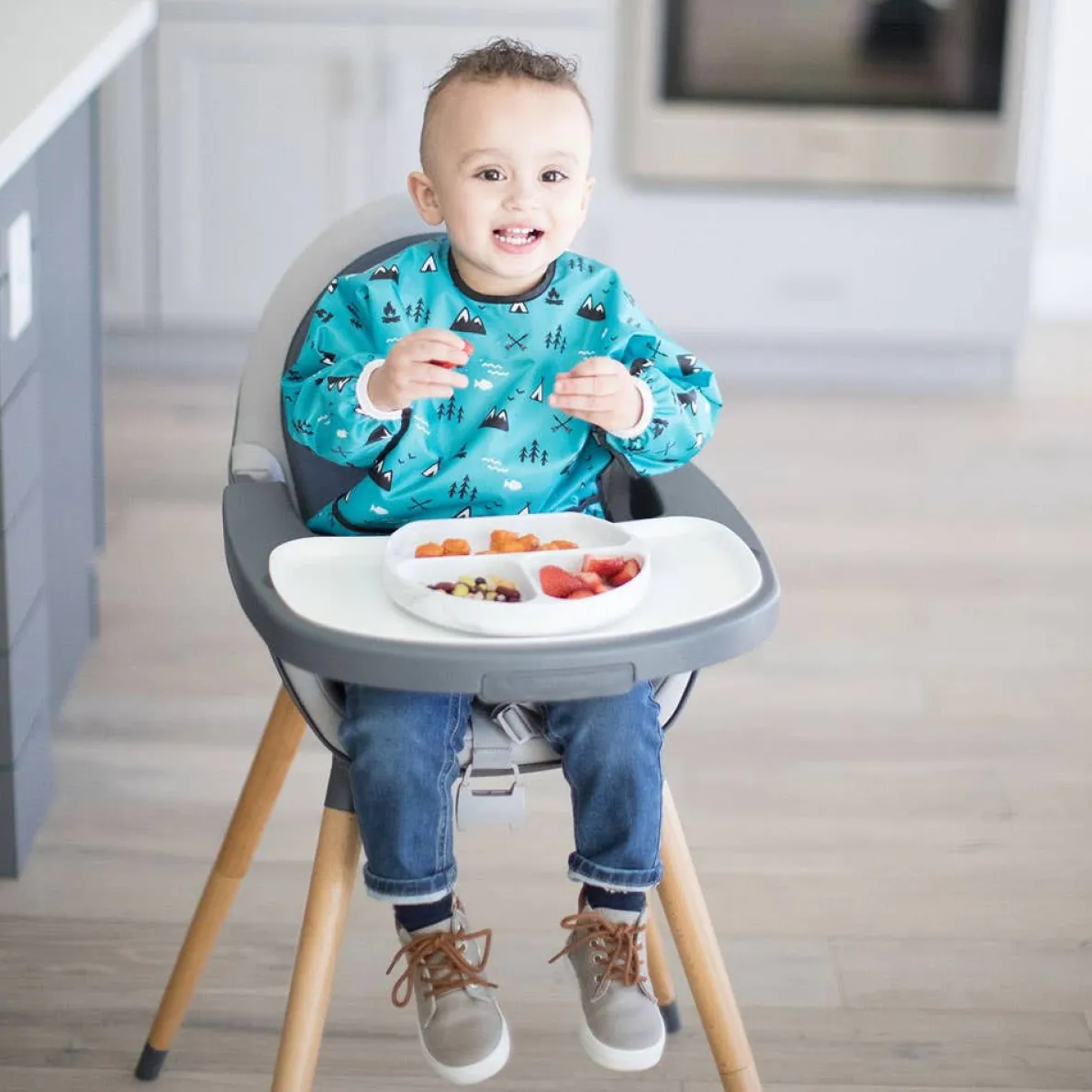 This Silicone Grip Dish is perfect for little ones learning to self-feed. This divided plate is perfectly sized for toddler portions. A strong suction base ensures the dish stays put – even with the most aggressive toddler! Great for use on highchair trays or tables. A straight side allows kids to belly up to the plate, allowing less of a mess. Silicone can withstand low and high temperatures, easily transitioning from the refrigerator or freezer to the oven or microwave. Made with 100% food-safe silicone that’s durable, stain and bacteria resistant.