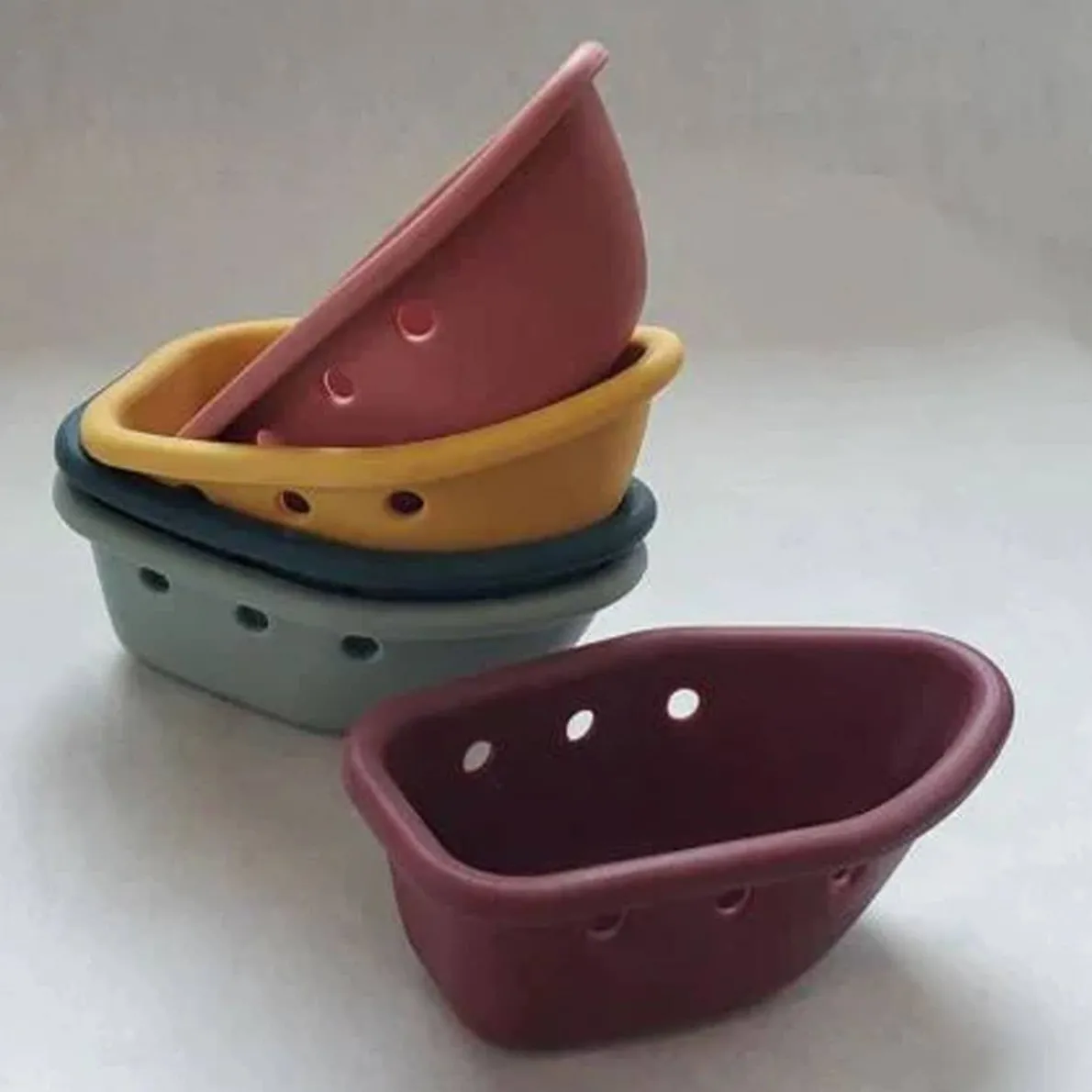 Float, scoop, and sift with the noüka Silicone Stacking Boats during bath time and water play. Five floating boats feature holes at the top for scooping and sifting water or sand. Easily stackable for storage and encourages fine motor skill development. Made from soft and flexible food grade silicone, the floating boats are easy to clean, durable, and long-lasting. These Silicone Stacking Boats are available in an array of calming, modern colors for your little one.