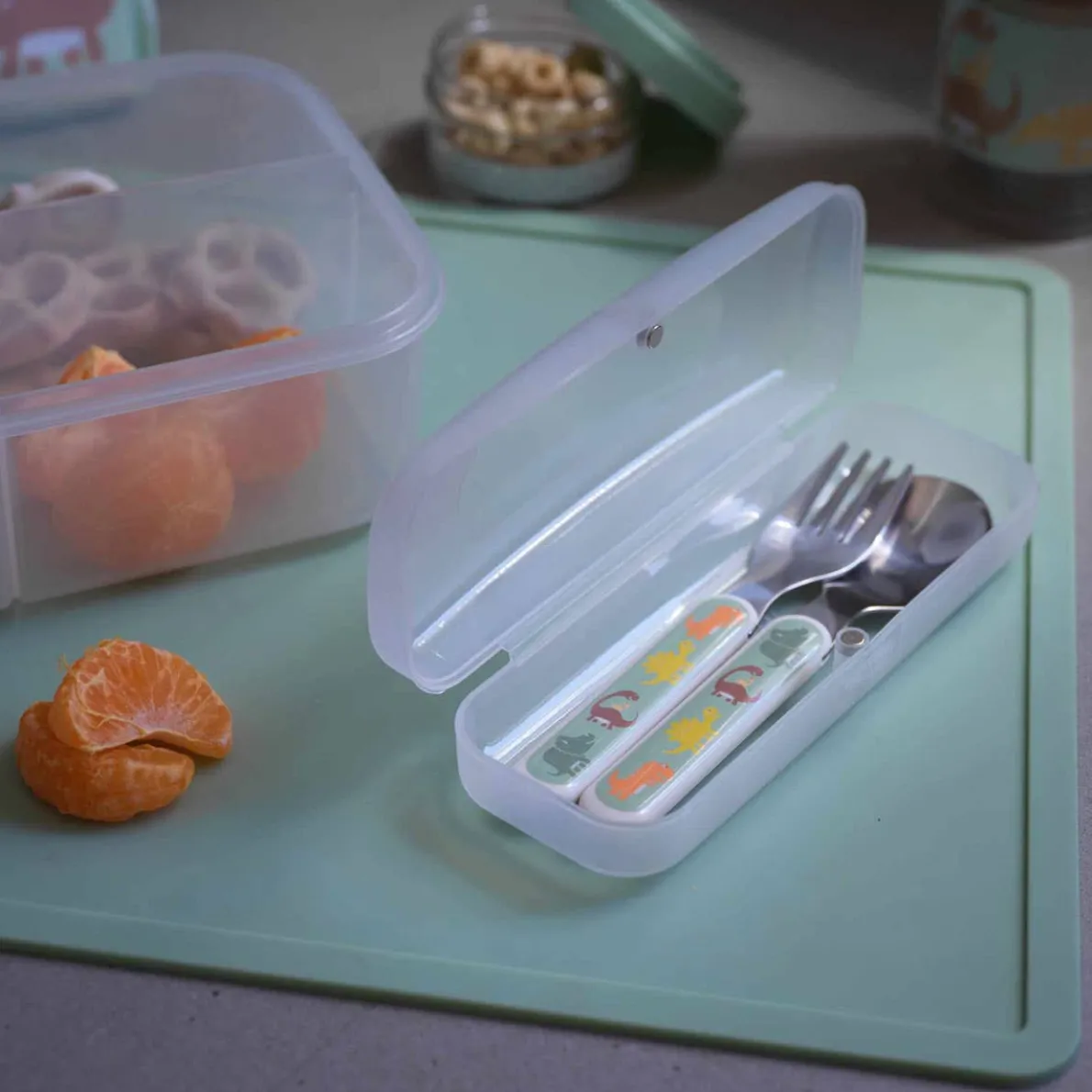 - Set includes spoon and fork