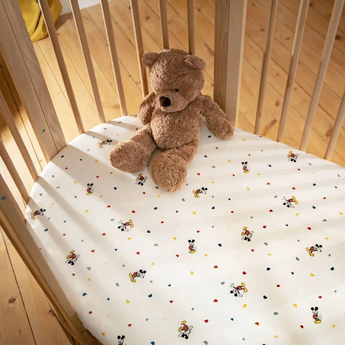 - Fitted crib sheet with elastic all the way around