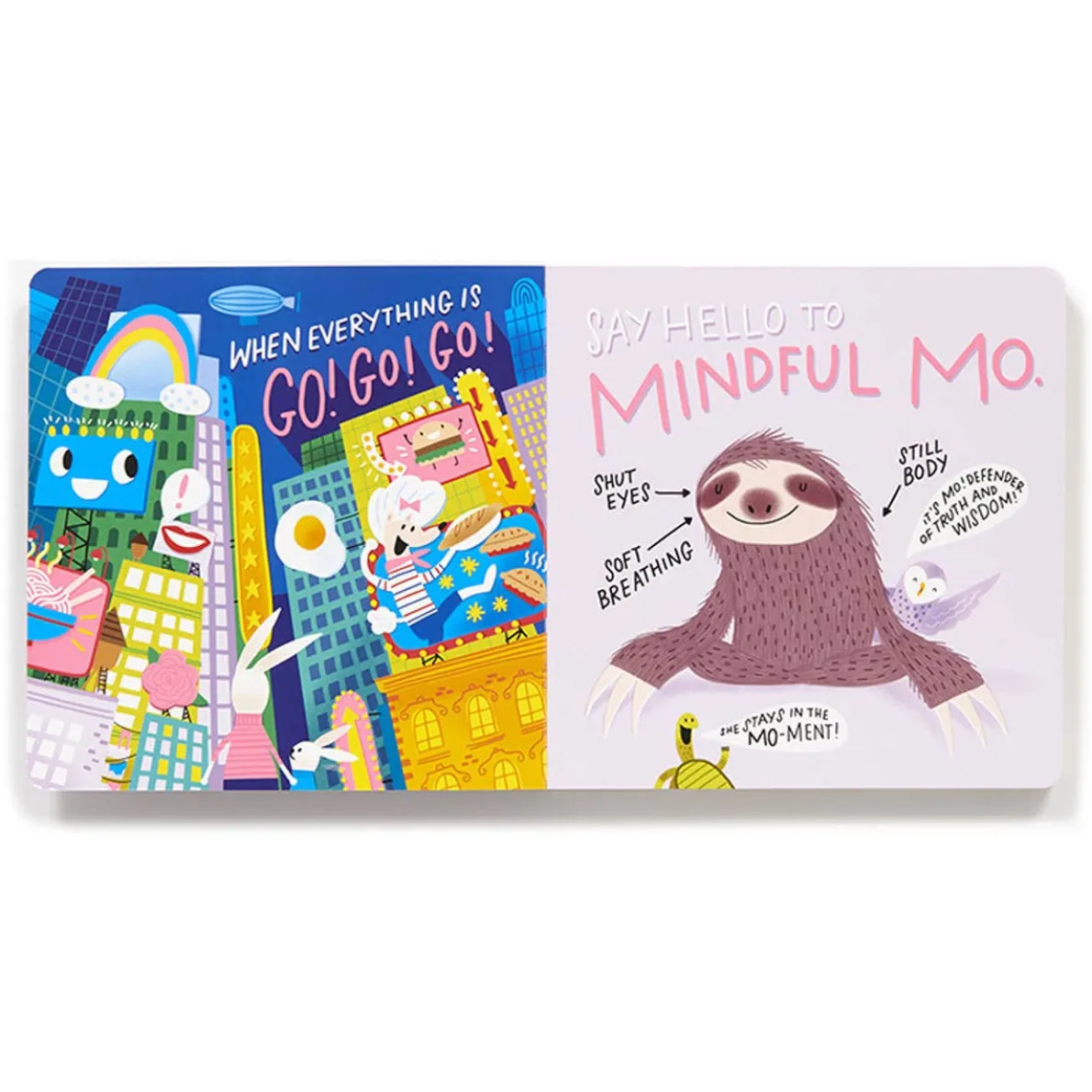 This pun-derful guide to mindfulness offers many fun teaching moments for kids and their caregivers, covering topics from taking deep breaths to acknowledging strong feelings and working to let them go. Filled with bright, adorable illustrations, this playful, sturdy board book is sure to give the preschool set much to ponder. As a bonus seek-and-find element, readers will find at least one rose on every spread—an additional reminder to stop and smell the roses!