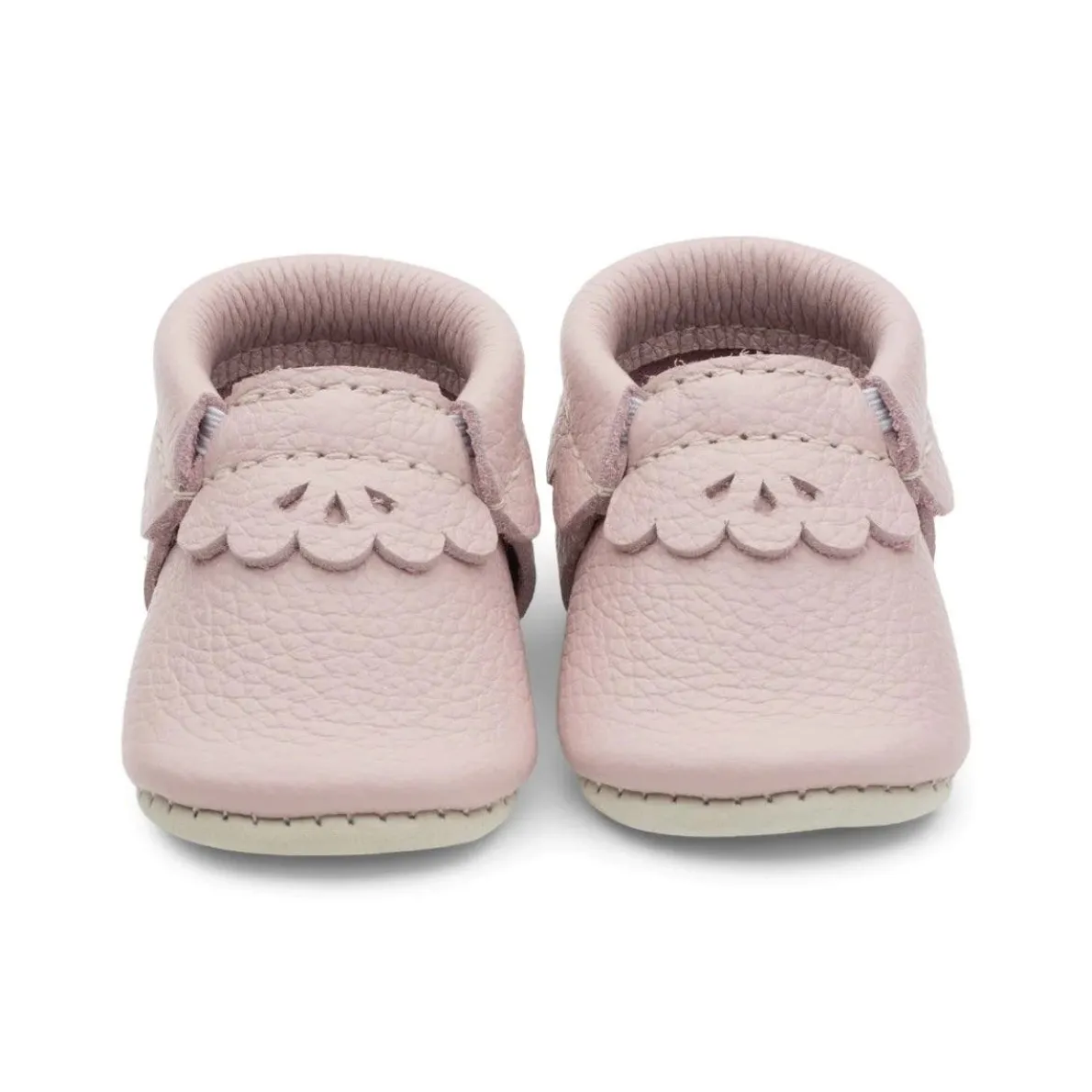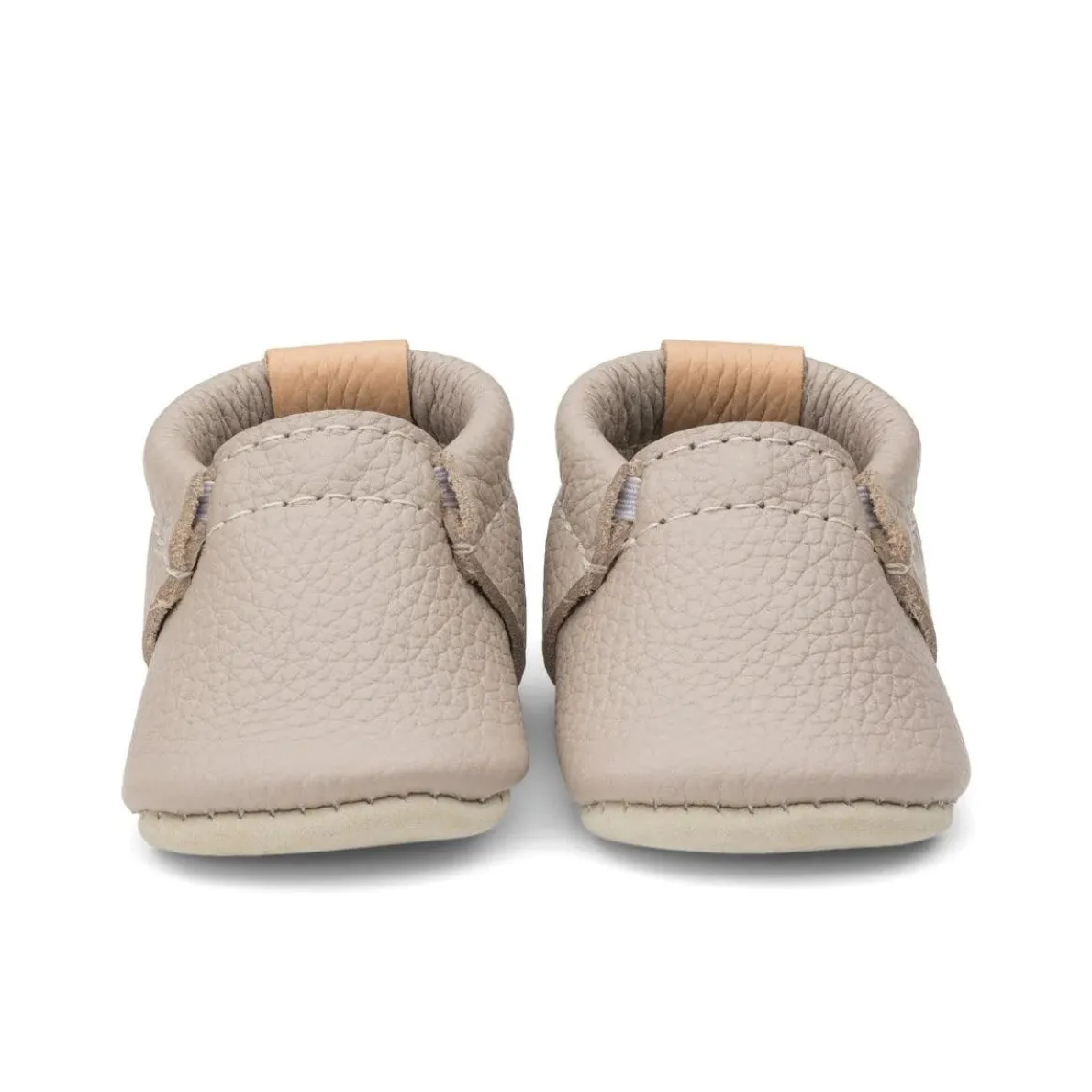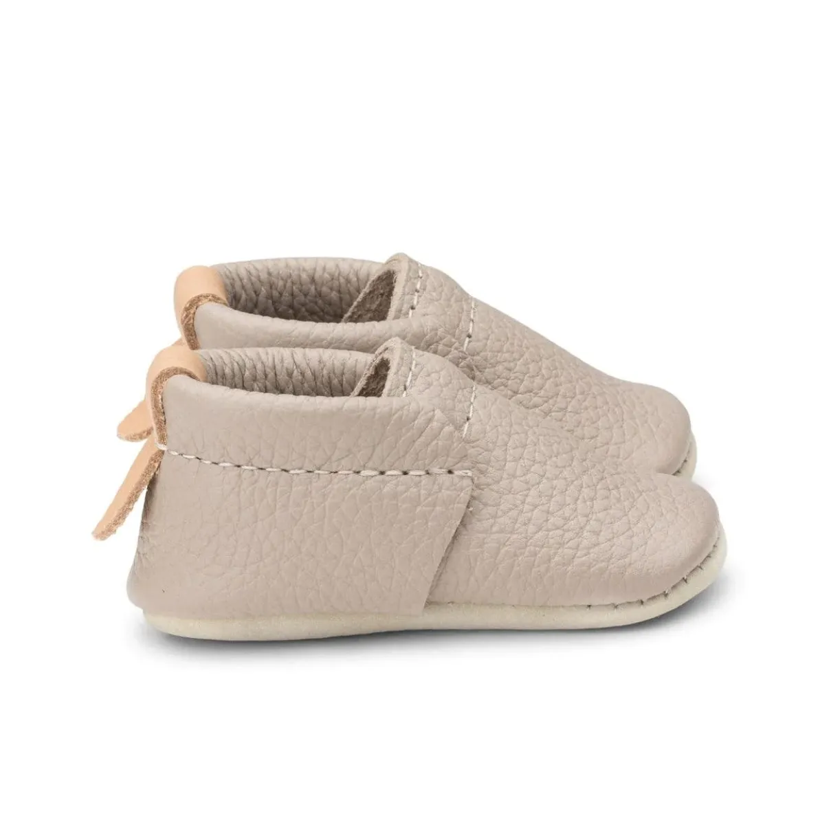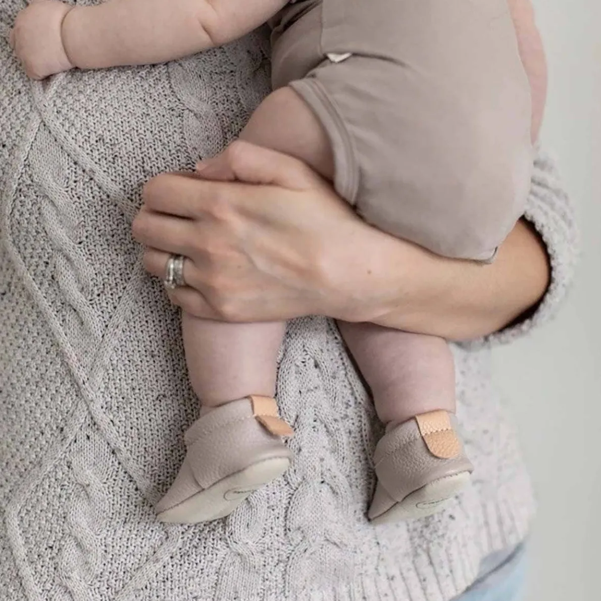 The Soft Soles are made from 100% genuine leather at the factory, in Abbotsford BC. They feature an elastic at the opening, making it easy to slide them on and off and keeping them from falling off even the wiggliest of feet! Babies benefit from wearing soft soles, especially as they learn to walk, as they create a ‘barefoot’ feel while also offering protection against the elements.
