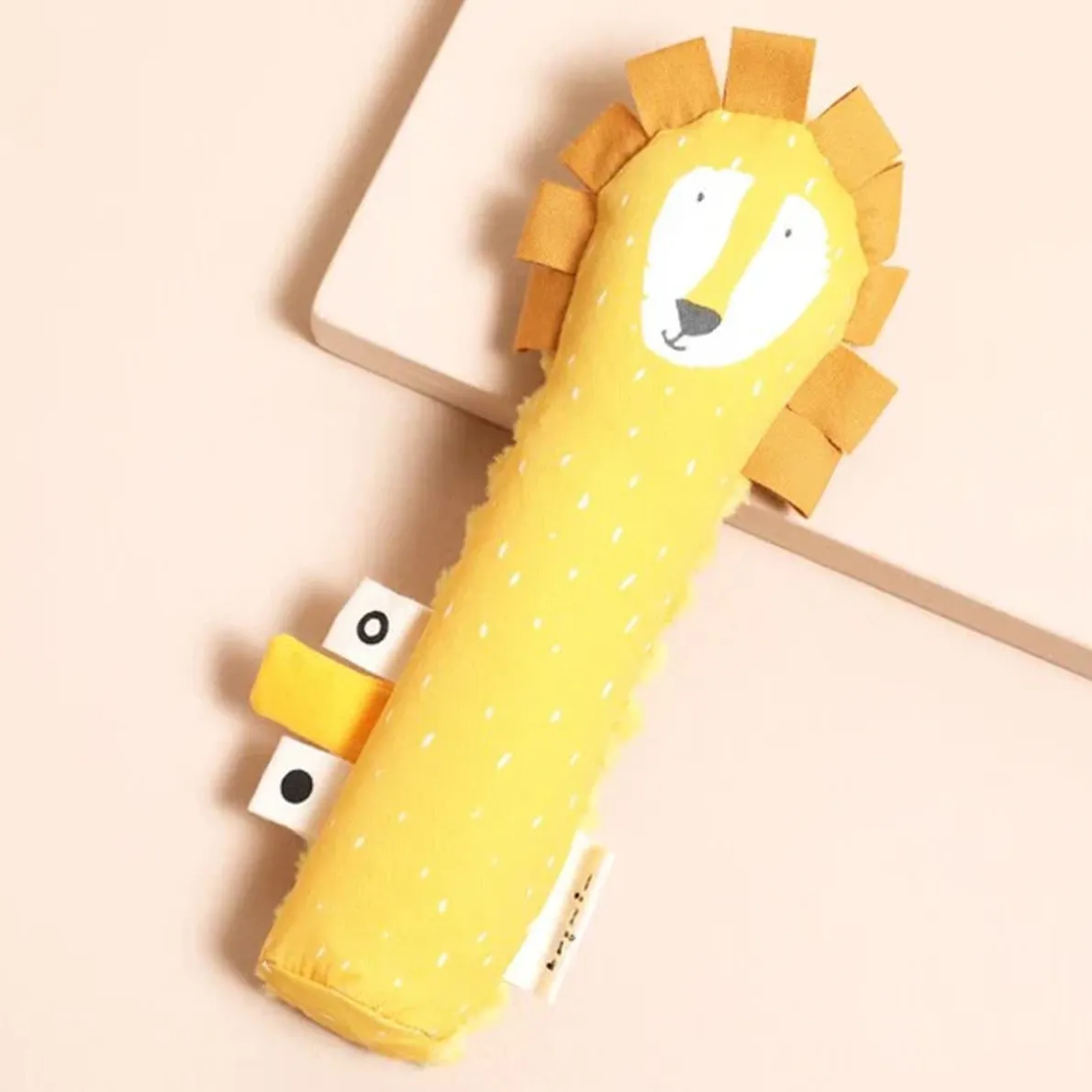 This little friend can be grasped by the tiniest hands. Small and soft, it gives a short, loud ‘squeak’ when squeezing it.