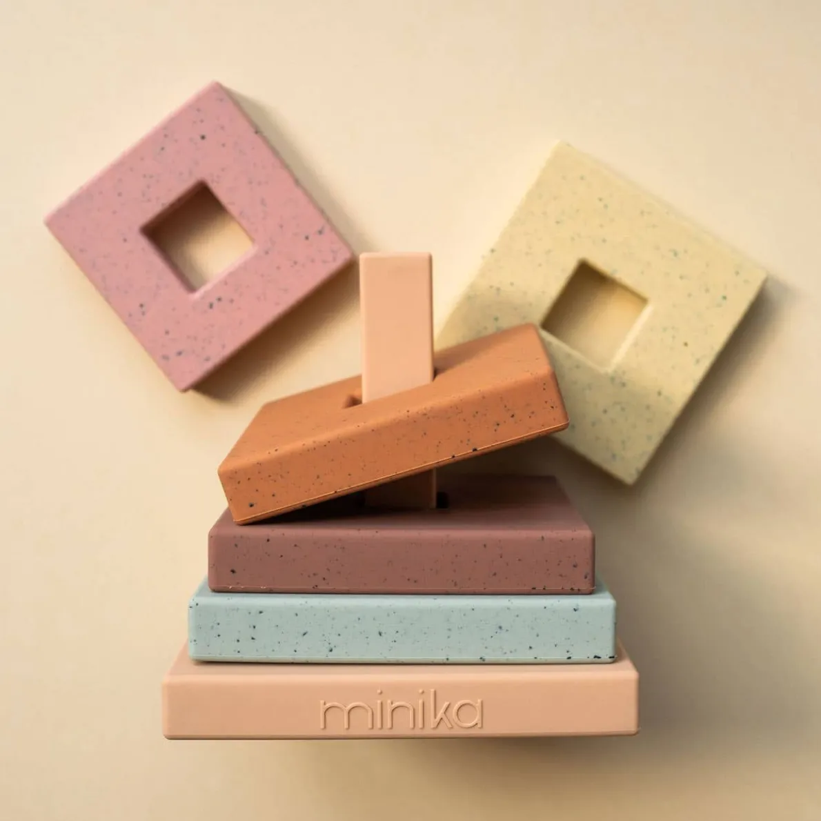 A pretty stacking tower in silicone composed of 6 Minika colors! For 0-3 years old. The toy can also be chewed on if baby is teething.