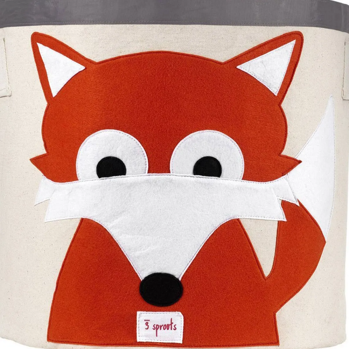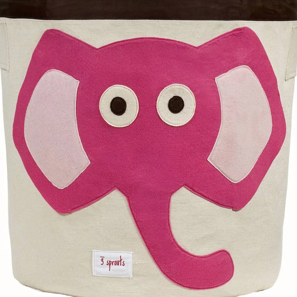 Help your kids clean up their act with our cute animal storage bins. Well sized for storing toys, books or laundry, our storage bin measures 17.5″ in height and 17″ in diameter. Made of a cotton canvas, our bin is tough enough to hold whatever you throw in it, but cute enough to complement the best dressed home. A great space saver, our bin folds easily away when not in use. The 3 Sprouts storage bin is a perfect gift for babies, toddlers and kids.