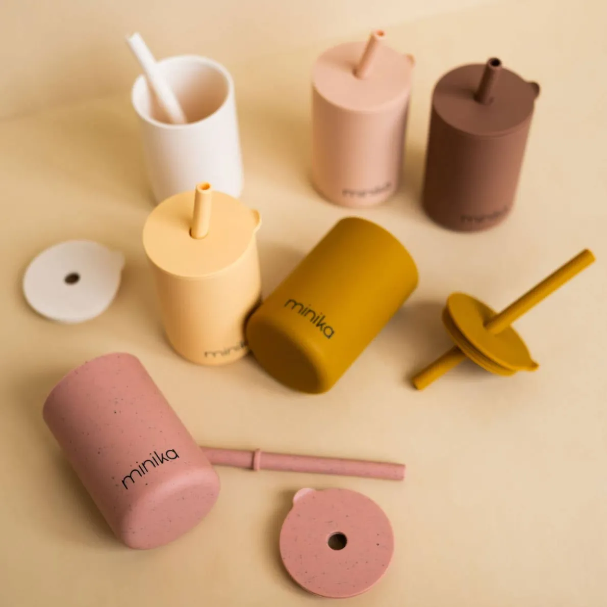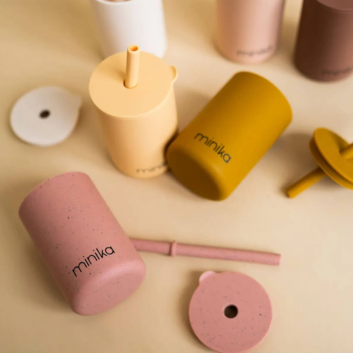 Simple and refined Glass with straw and lid. Non-waterproof.