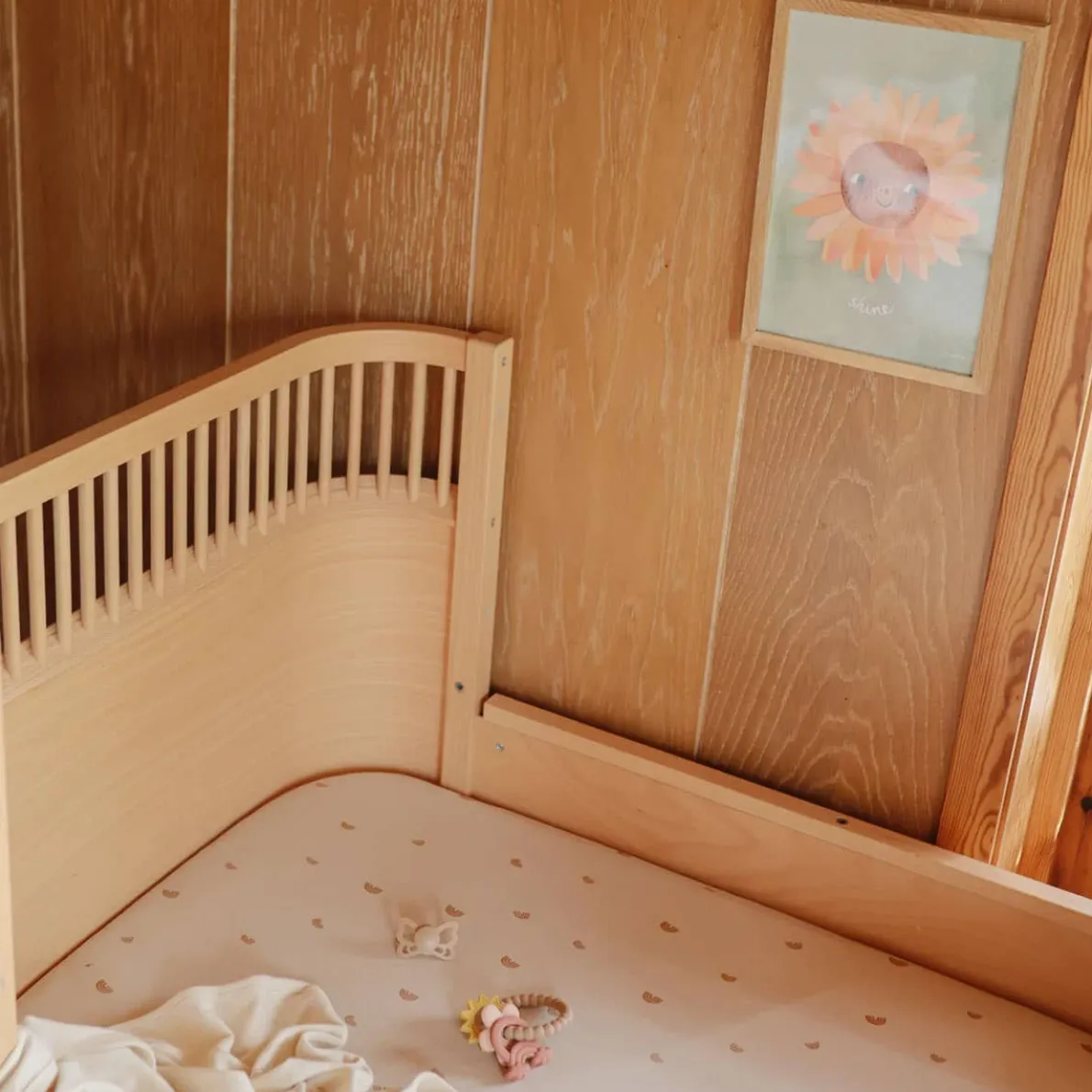 Made with organic cotton, mushie stretchy crib sheet is pre-washed for softness and stays breathable while keeping your baby warm and cuddly. With fully elastic edges and a material that offers a gentle stretch, parents can feel confident in a perfect fit, wash after wash. Its knit fabric is soft to the touch, while subtle shades and delicate designs bring a sense of calm to baby’s nursery.