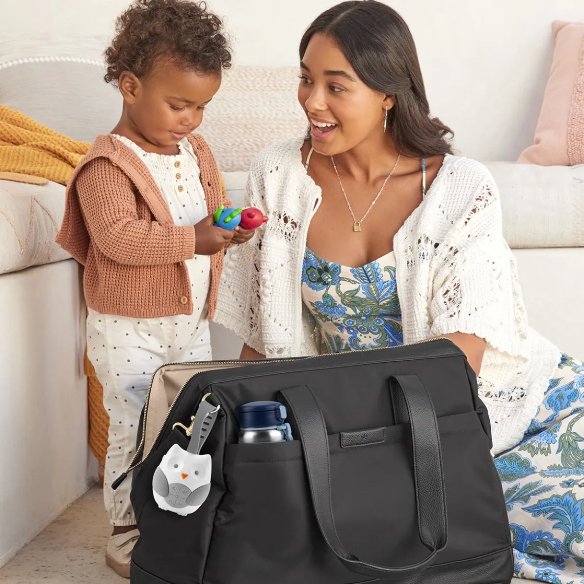 It’s hard to schedule everything around naptime. Parents want something that gives them the freedom to take baby out and about without stressing-a convenient travel soother that is as sleek and contemporary as their stroller. The Stroll & Go Portable Baby Soother attaches to strollers, diaper bags and more with a handy silicone strap. Despite the compact, it boasts full features including two songs, two nature sounds, volume control and an auto-off timer.