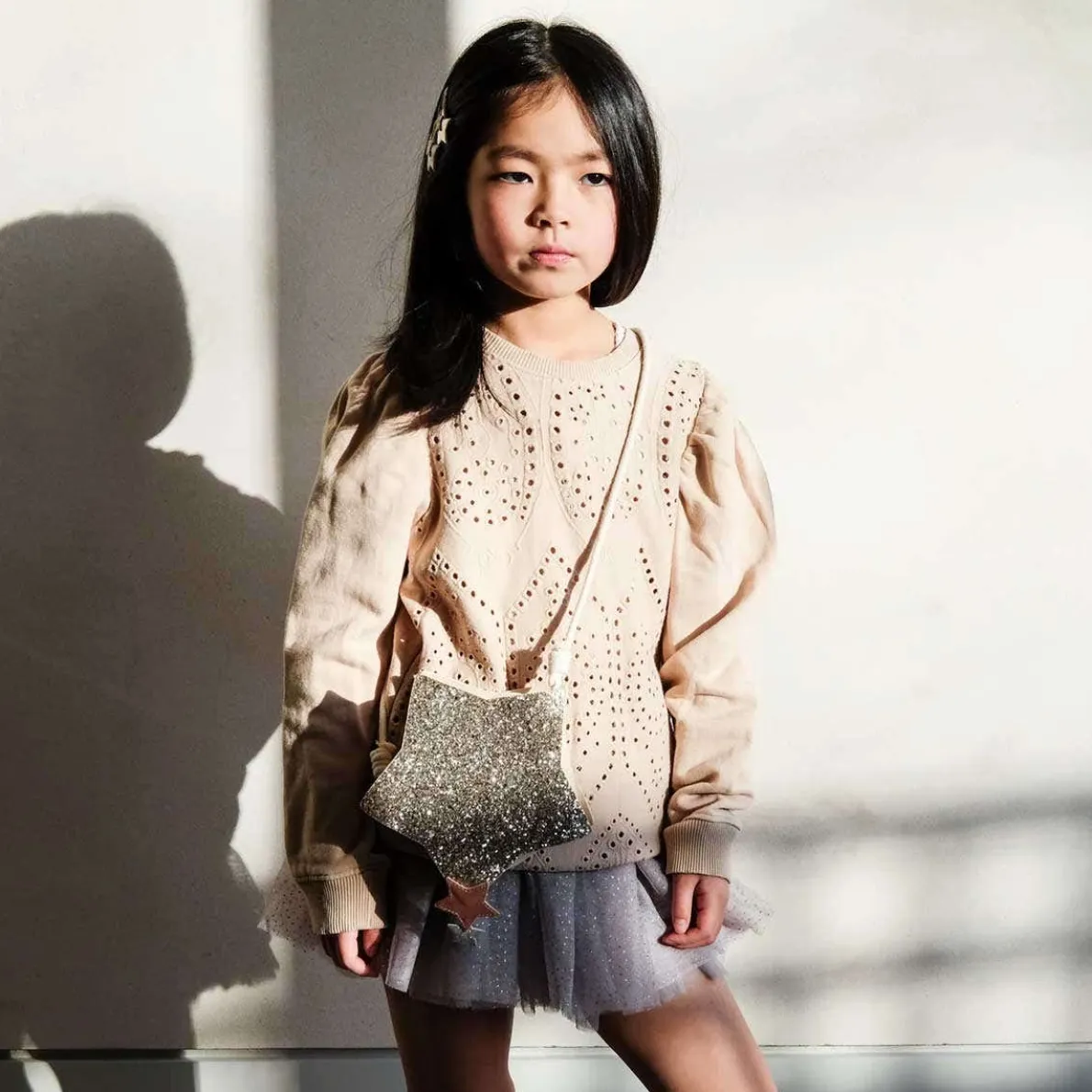 Let them shine like the star they are with this super sparkly 3D star bag! A gorgeous rose pink 3D glitter star forms the main part of the bag and is then complimented by smaller ‘fallen stars’ on the strap and bottom corner. Super special and will jazz up any outfit, be it playdate or party!