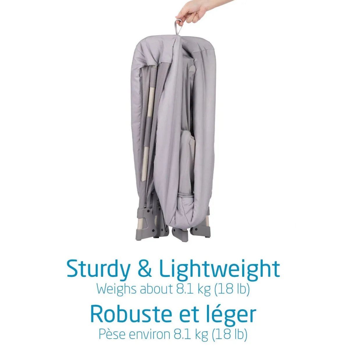 Everything about Swift is designed for speed and ease of use. Its smooth one-step fold is so quick and easy, you can even do it one-handed. One swift action and you can simply get on with your busy day. Swift grows with your baby from newborn to toddler. So instead of buying three separate portable products (a bassinet, travel sleep space and play yard), the Swift is all three, stylishly rolled into one.