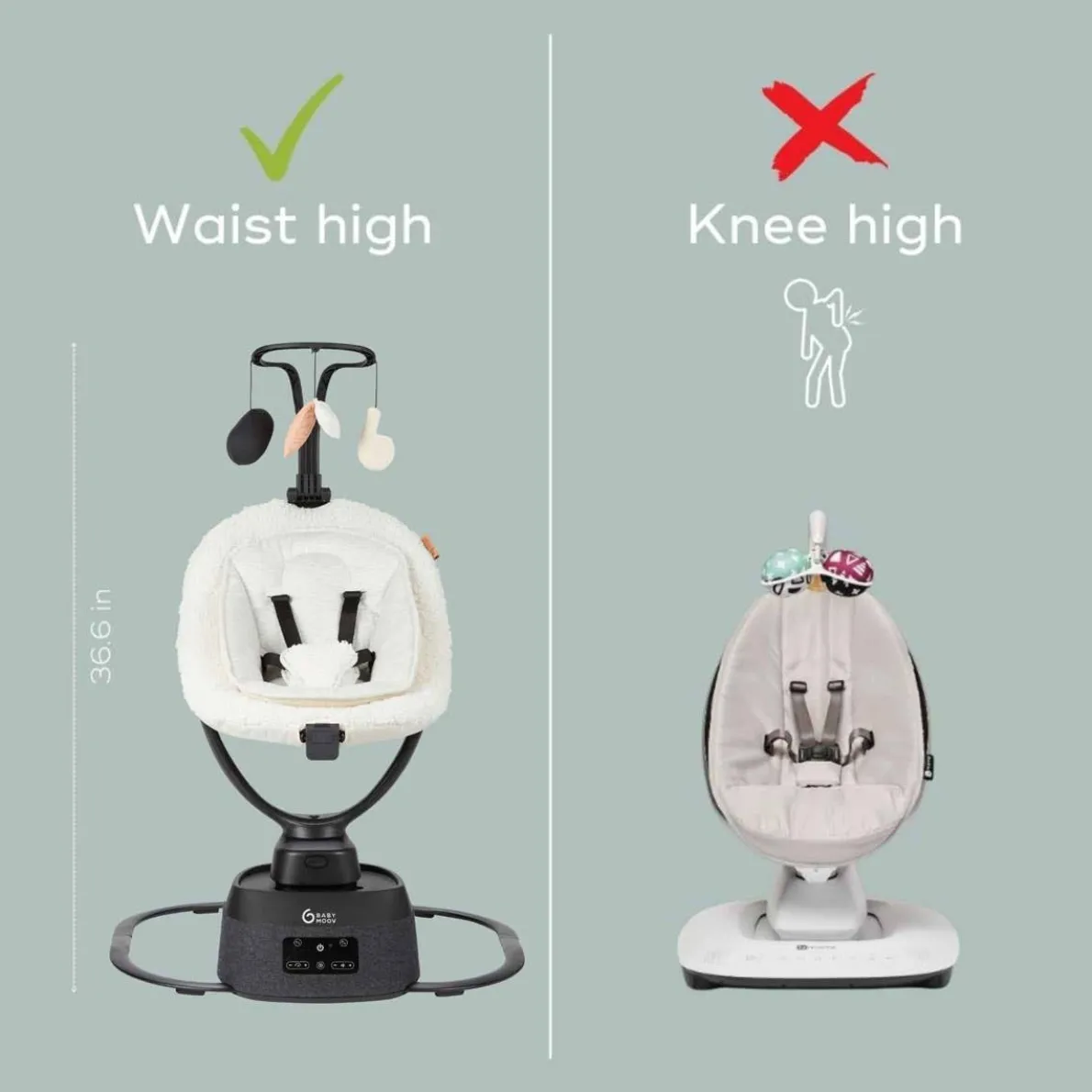 - Optimal Seat Height: Elevated to hip height for easier access than traditional low-to-the-ground swings—ideal for postpartum recovery and everyday convenience.